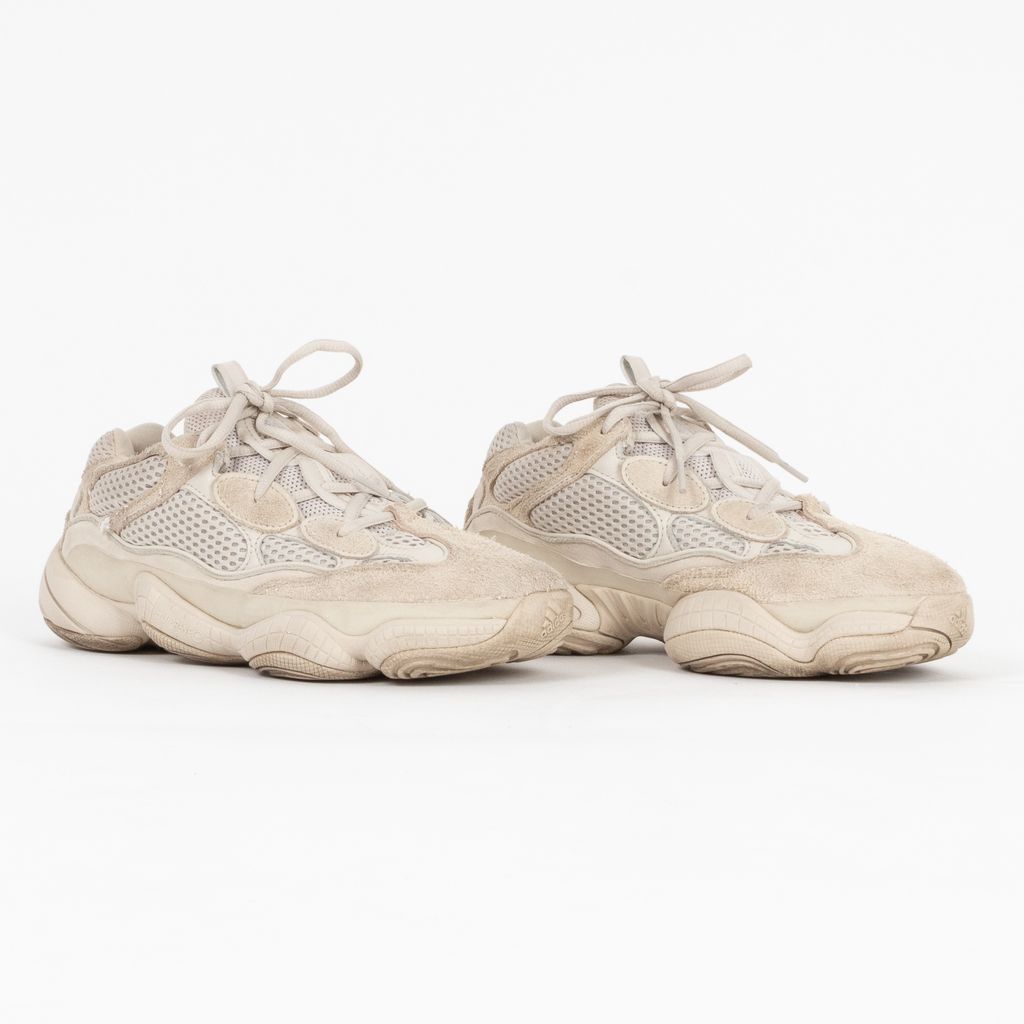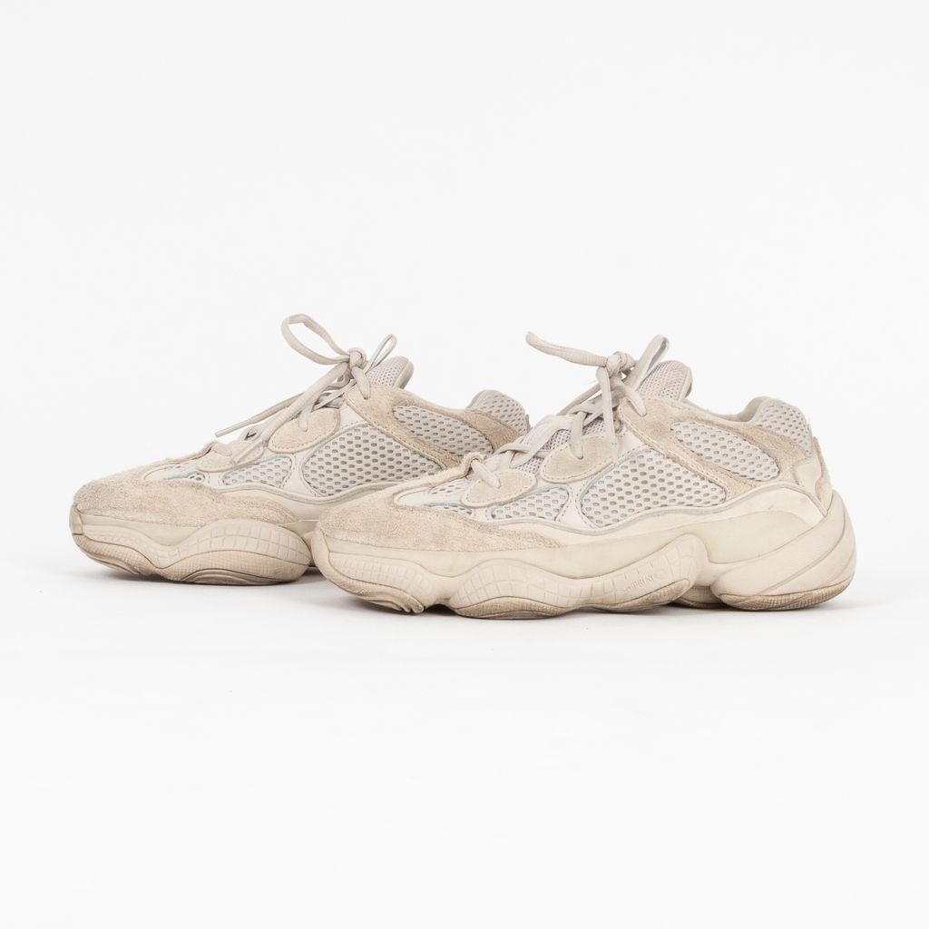 One of the most recent rollouts in Kanye West's Adidas owned Yeezy line, the 500 is built to last with its rugged design and multi-fabric body. Features suede, mesh, and leather body, lifted bubbled sole, tonal shoelaces, pull tab on tongue, and small Adidas logo near back heel on shoe outers.