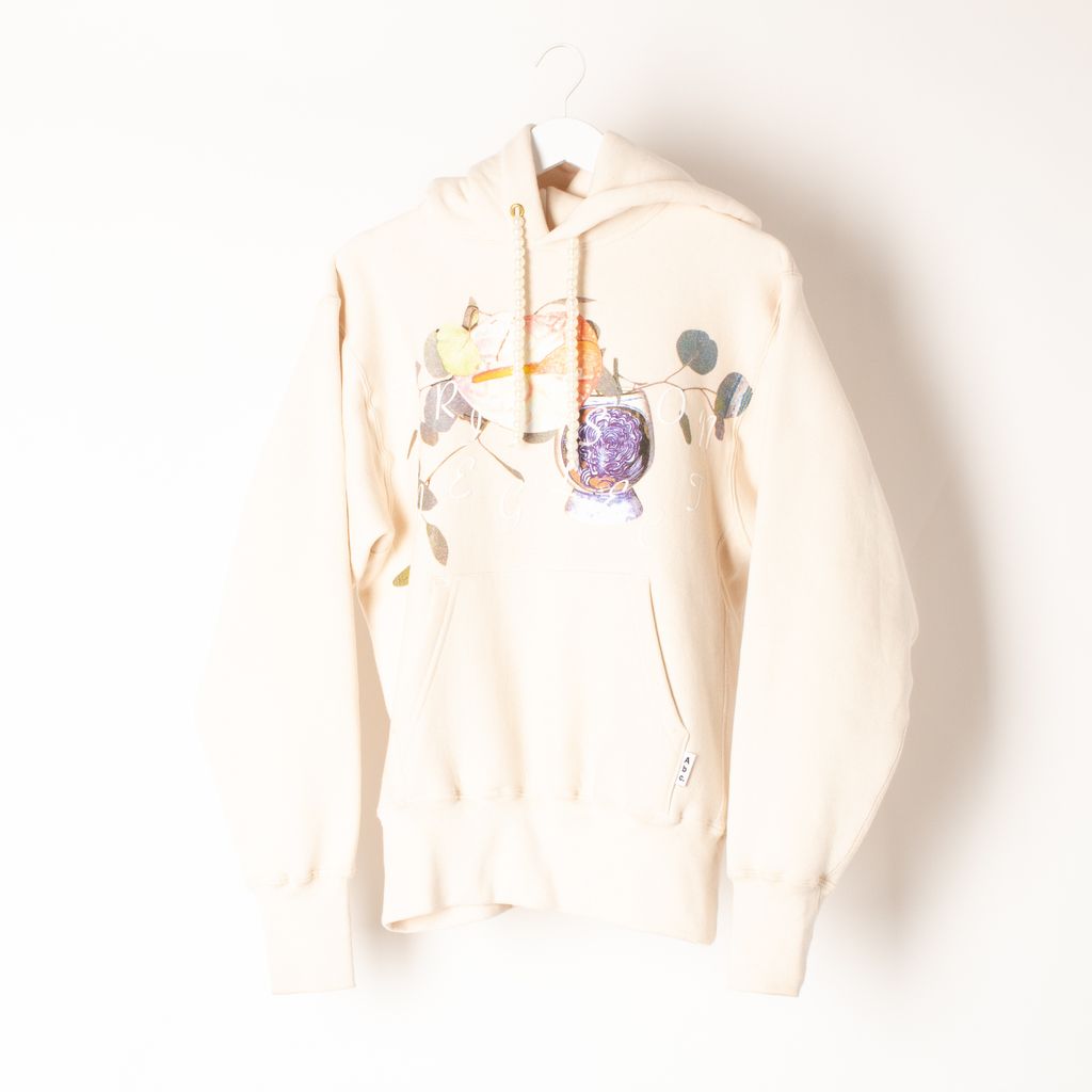 Like new, heavyweight hoodie from Advisory Board Crystals. Featuring printed graphics, ribbed hemline and cuffs, embossed branding and jeweled drawstrings. No sizing information available, measures 23" pit to pit.