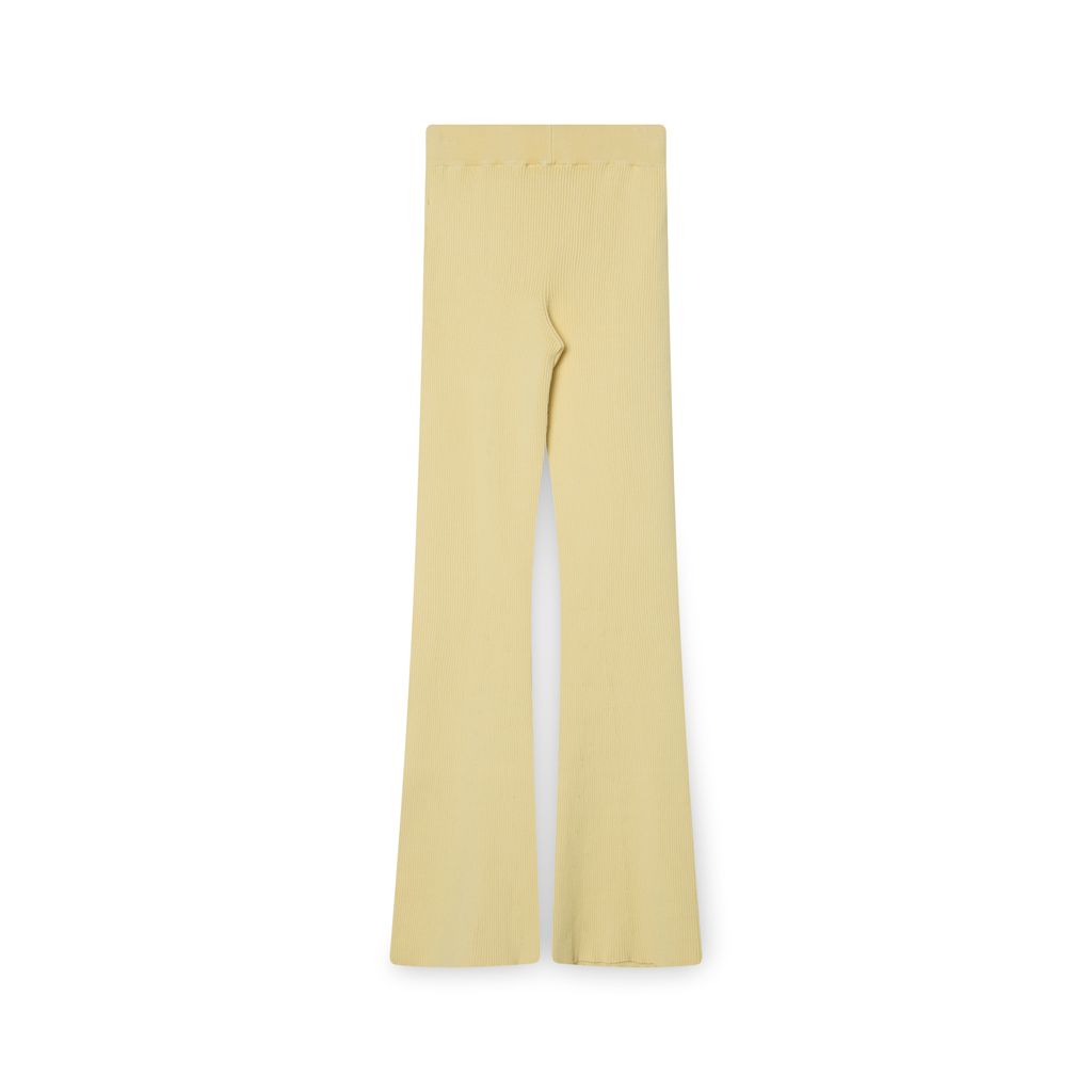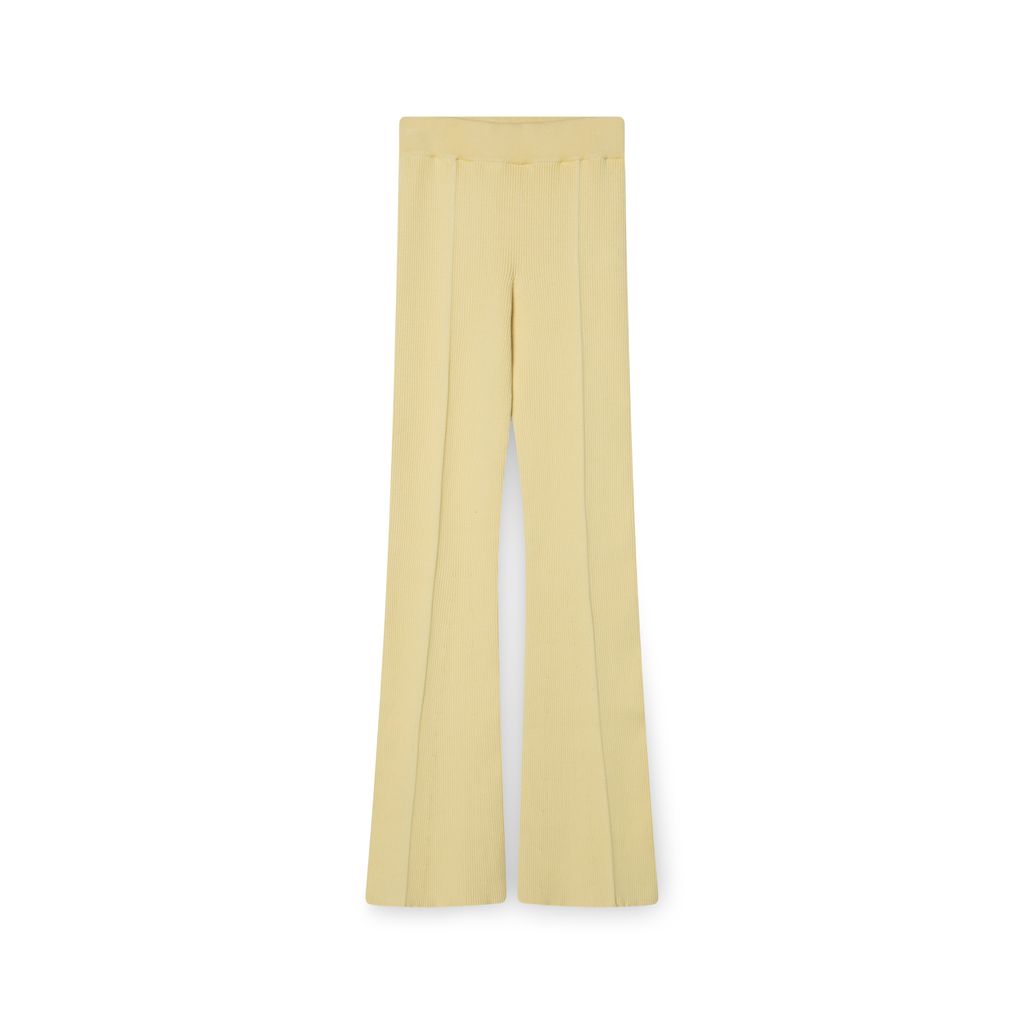 Aeron Egon Ribbed Flare Pants in Vanilla features ribbed knit, flared design, high waisted, and elasticated waistband.