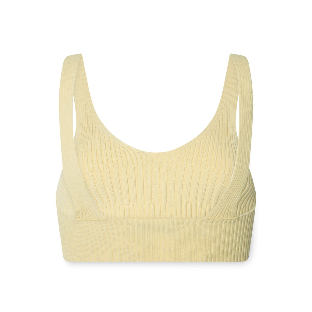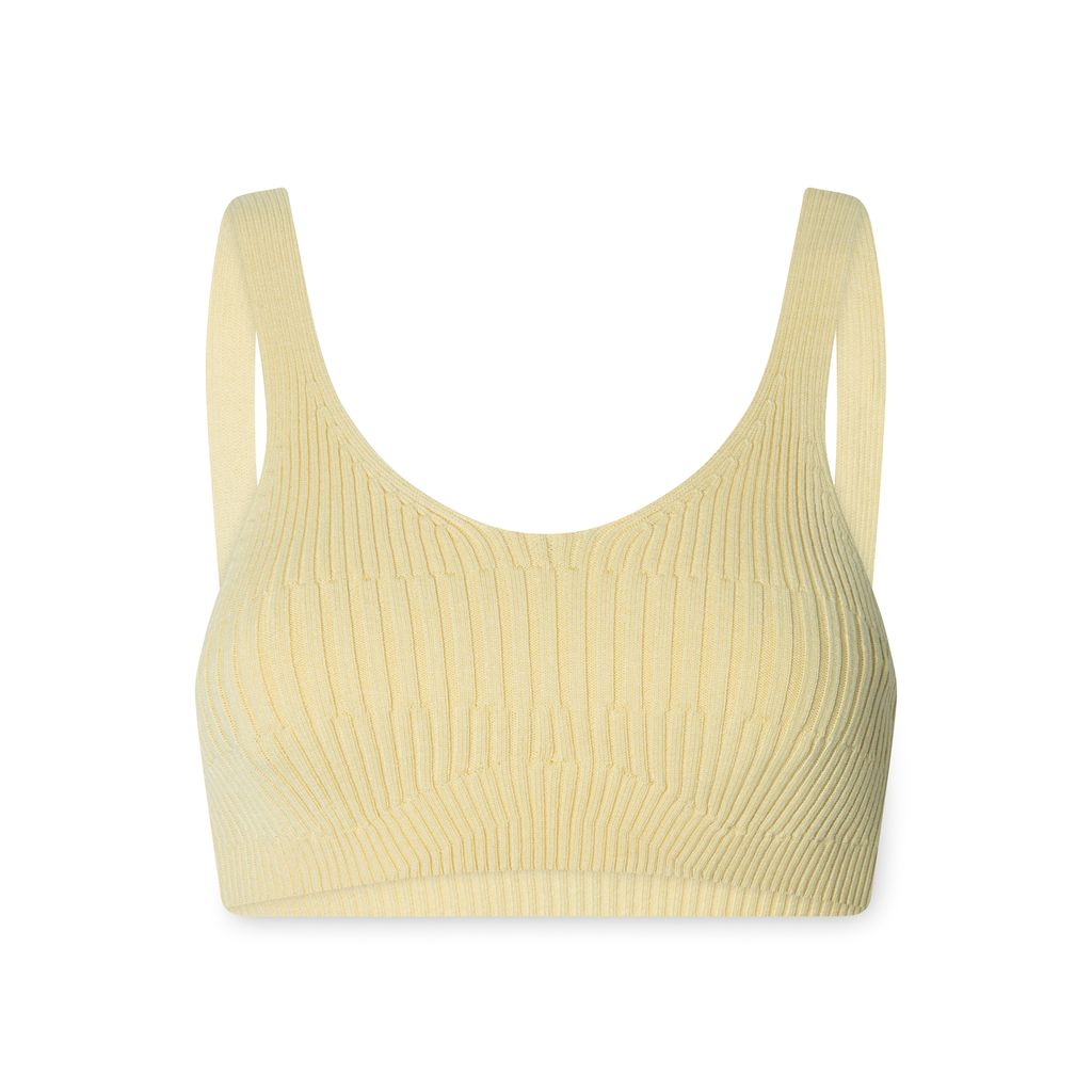 Aeron Joan Ribbed Bra in Vanilla features sweetheart neckline, square open back, straight hem, and ribbed knit.