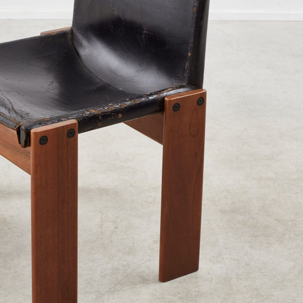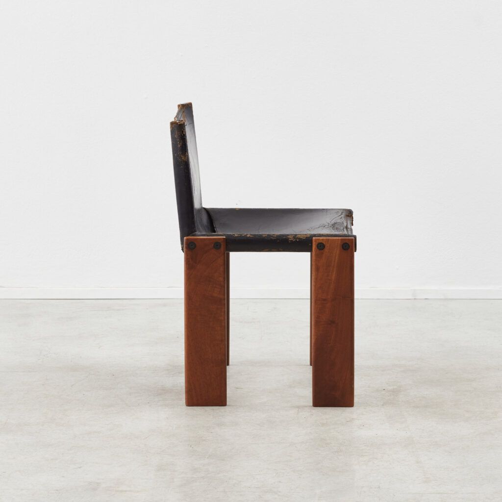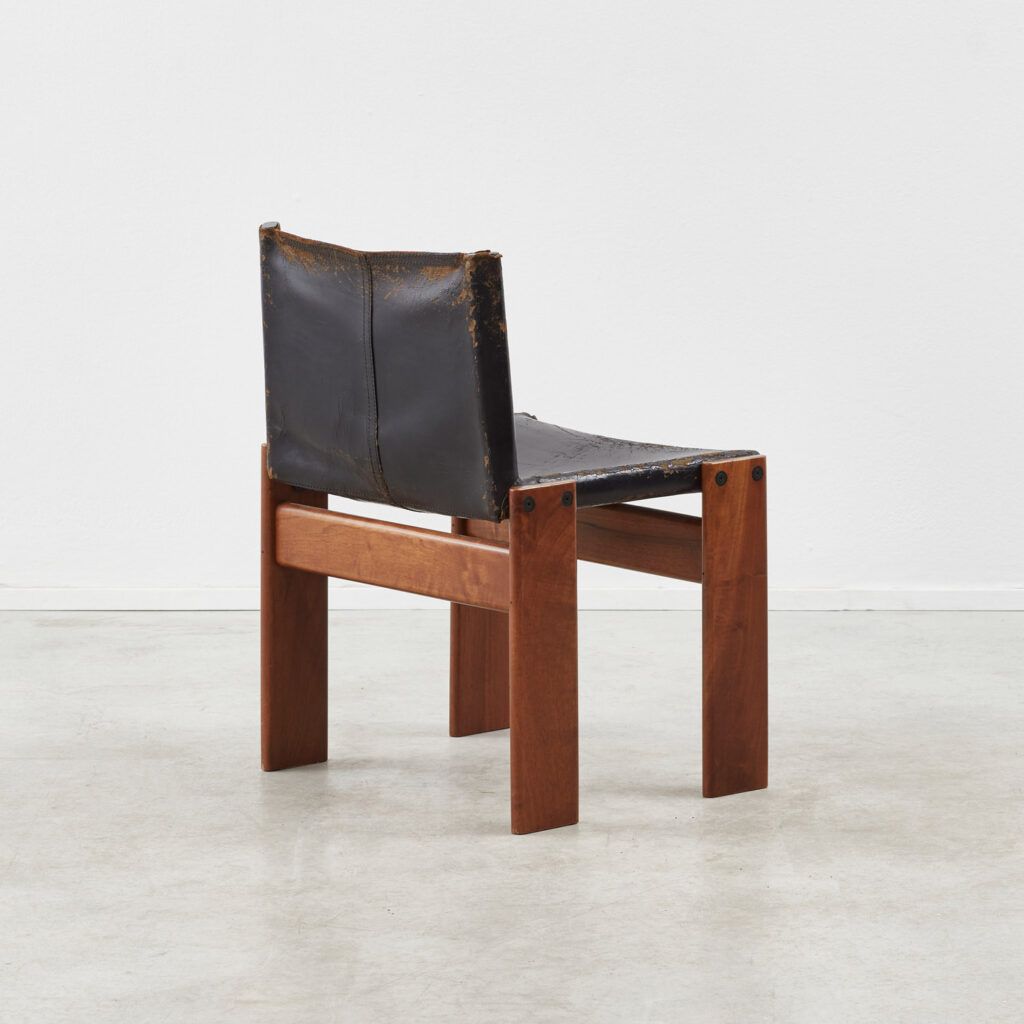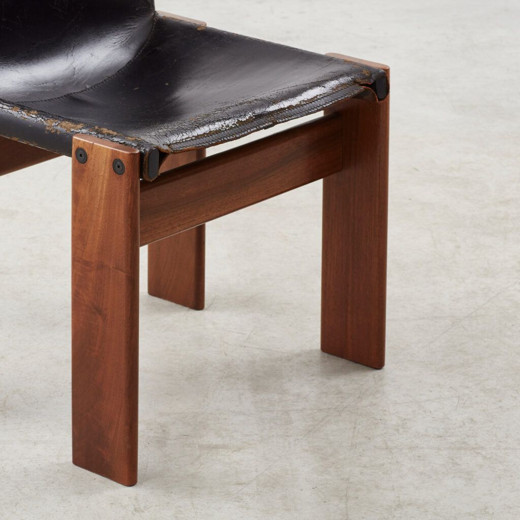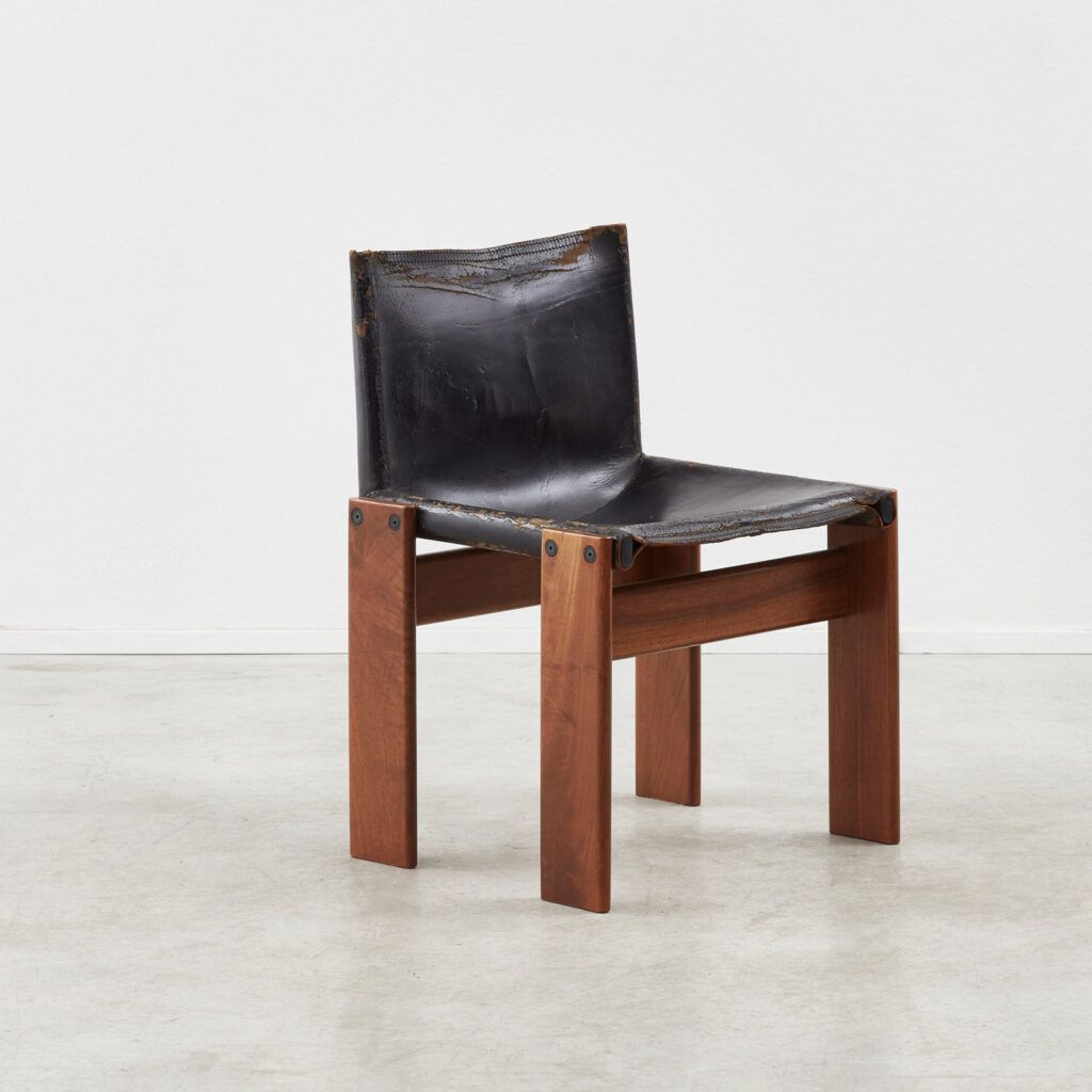 The Monk chair is one of many distinctive and highly regarded designs from the pair. Its humble form is comprised of two key materials, solid walnut legs with a black leather seat and backrest. Refined, functional and comfortable.