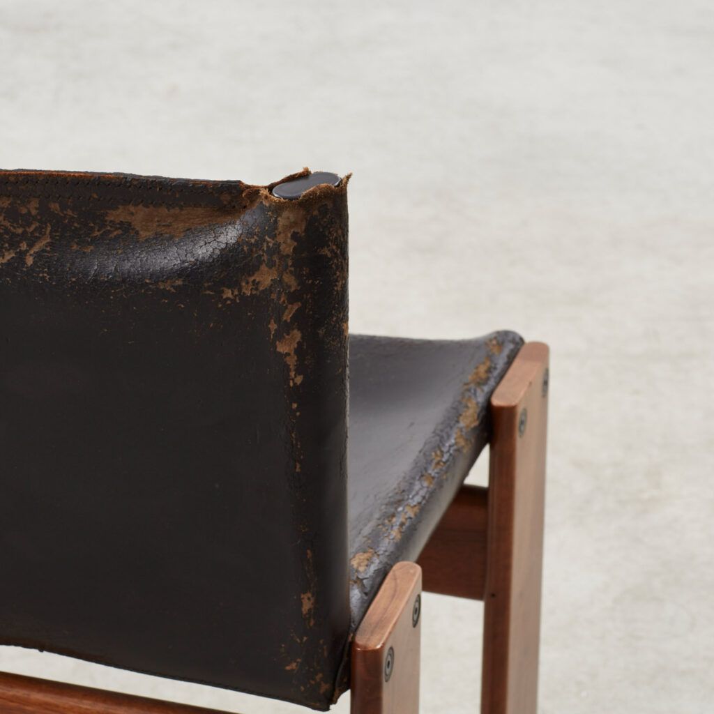 While structurally sound, the leather shows heavy signs of age. There is surface wear and patina across the surfaces and edges.