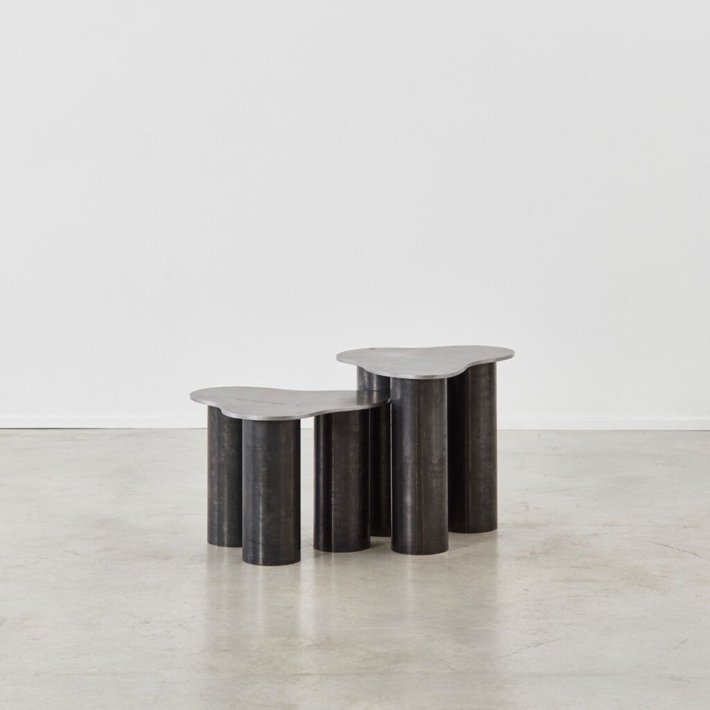 Side Table 001 is a made to order design by Archive for Space, a multidisciplinary design practice founded in London in 2019. Side Table 001 was designed to celebrate raw steel through exploring the material’s cyclical nature. Made from standard tube sizes and gauges, the entire piece is fully recyclable. The raw materials are untreated allowing the surfaces to develop a patina over time that tells the story of the piece. Each piece is handmade in Stoke-on-Trent, UK. The side tables come in two heights shown in the last image each listed separately and have recently been accompanied by a coffee table version. The design can be made to custom sizes on request. The tables will show some signs of patina and surface marks already, which are innate to the material. The top will continue to oxidise as the piece ages, the designers recommend wax coating the top after 3-6 months. Archive for Space is Arabella Maza and Stephen Maginn. They work across architecture, interiors, industrial design, installation and set design. Arabella was educated at The Architectural Association and Stephen was educated at The University of Edinburgh and Edinburgh College of Art. The studio also leads a design unit at The University of Cardiff entitled Archiving Place. Archive for Space adopts a unique approach to each project, drawing and synthesising on an extensive archive of references and disciplines blending their research into a conscientious yet individual experience. They first met while working on a diverse range of projects at the late Sir Terence Conran’s architecture, interior design and product design studio, Conran and Partners.