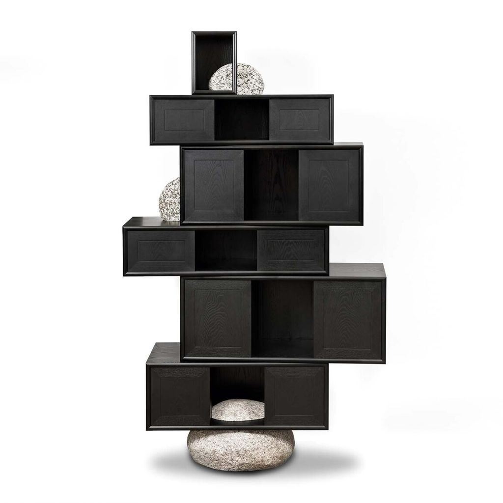 Black urethane on ash, natural stone, aluminum.