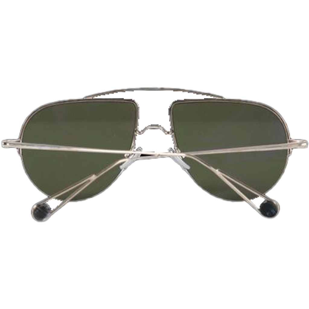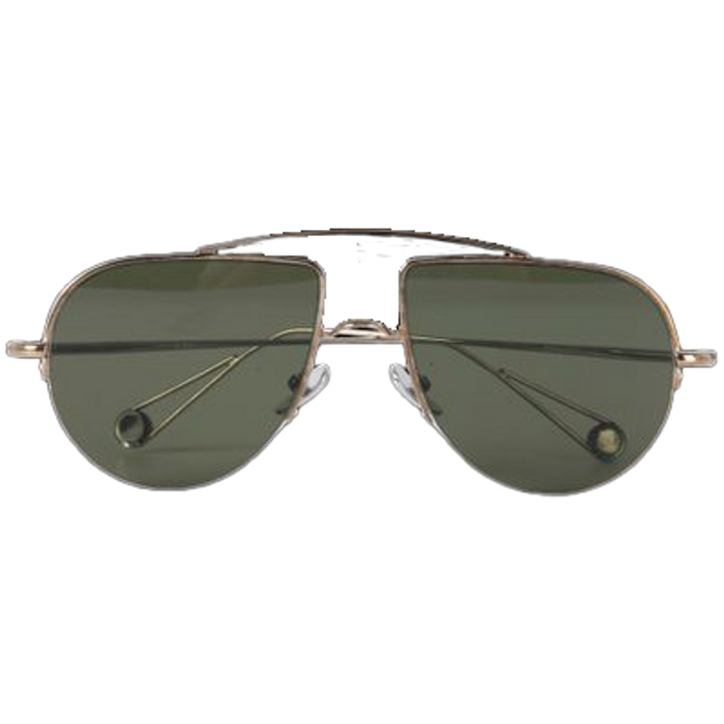 These sunglasses feature a modern interpretation of a classic pilot shape from the 1980’s. The Place d’Aligre silhouette has a half rimless frame, inspired by the disparity of the Aligre area of Paris, where the street rules coexist with a rising intellectual community. Metallic nose pads and skinny metal frames complete this futuristic eye piece. Discoloration to metal frame from age. In good condition.