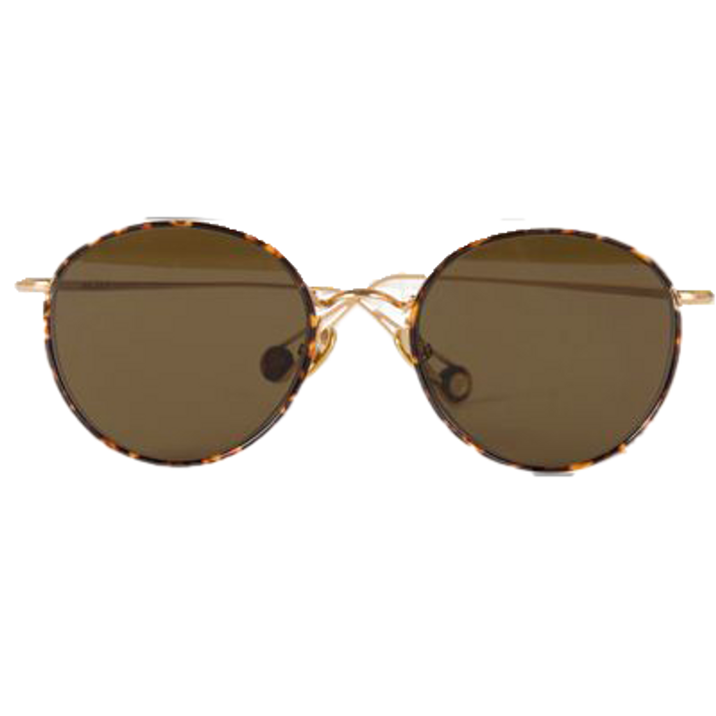 These polished pair of sunglasses from Ahlem features a classic round shape with impeccable modern detailing. This elegant frame is composed of feather-light palladium, electroplated in real gold and finished with hand-sourced vintage tortoise acetate. Like new, in amazing condition.