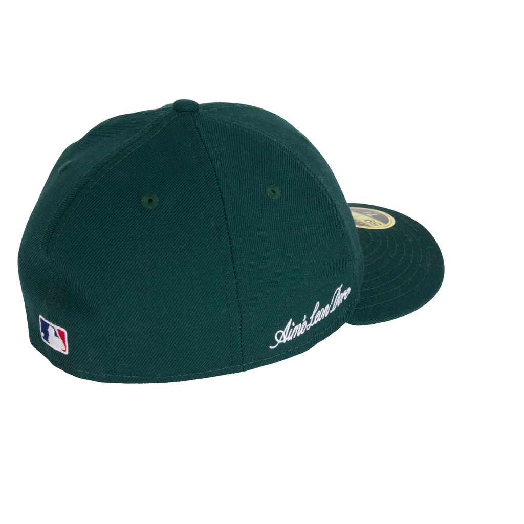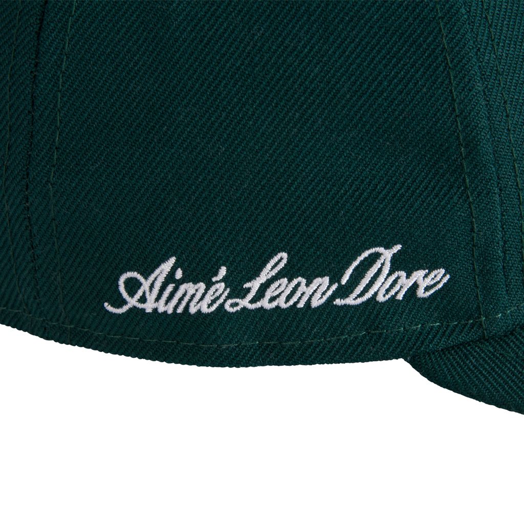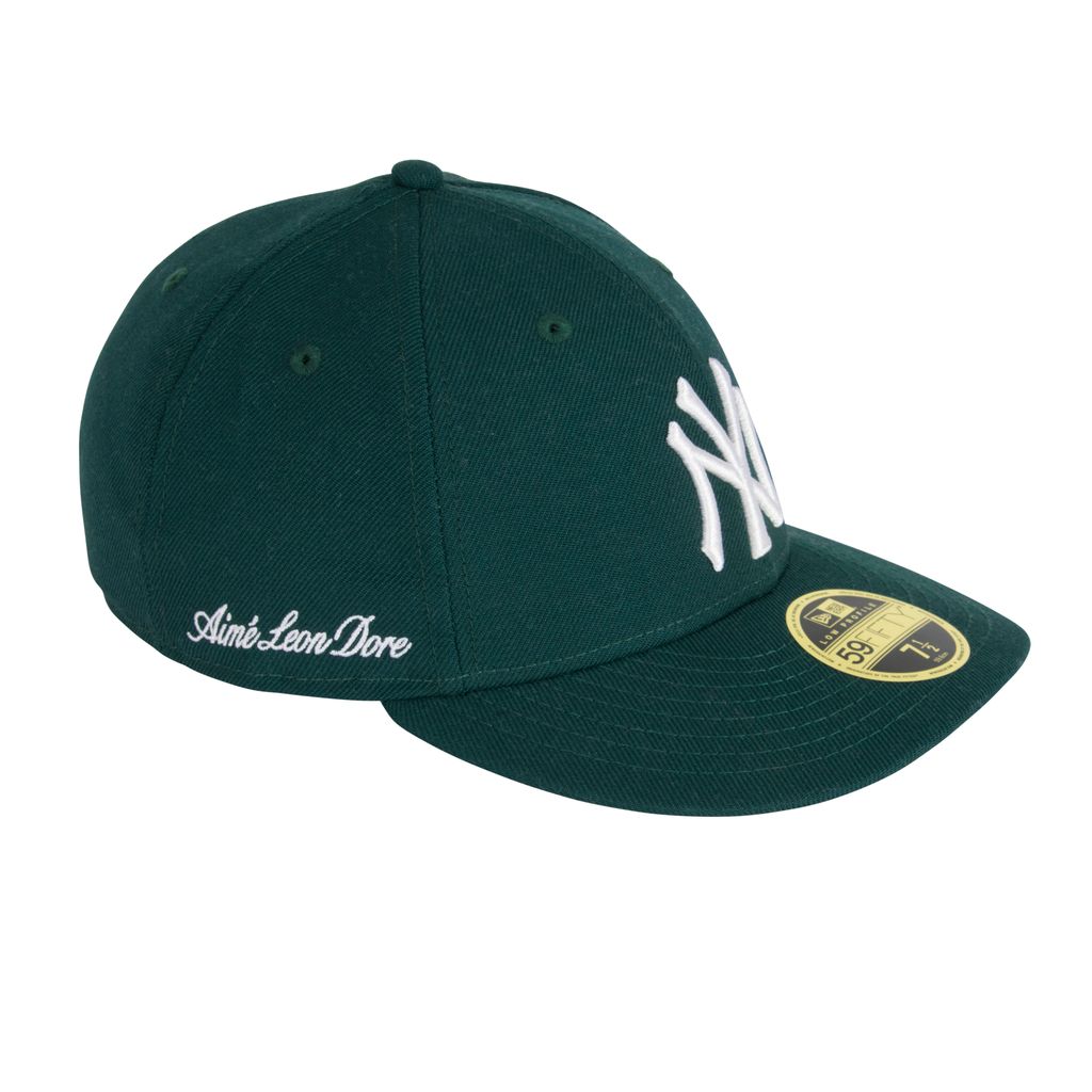 This Aimé Leon Dore X New Era Yankees hat in botanical green features an embroidered NY logo on the front and "Aimé Leon Dore" embroidered in cursive at the side. Brand new all stickers attached.