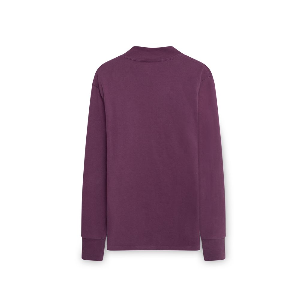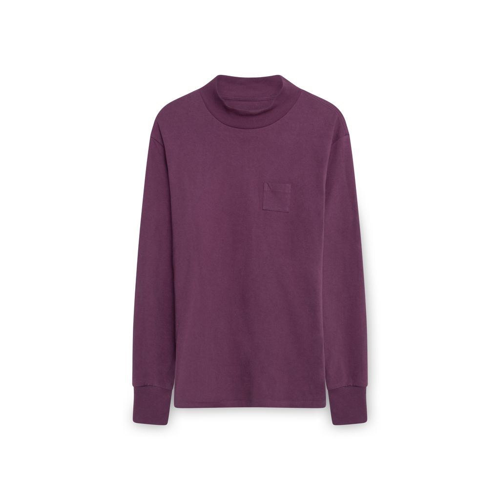 Aime Leon Dore Mauve Long Sleeve Pocket Tee features mock neck collar, small chest pocket, and ribbed collar and cuffs.