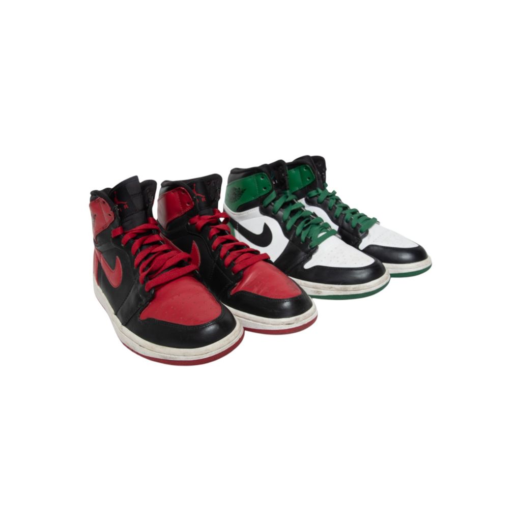 Air Jordan 1 Retro High DMP "Bulls Celtics Pack" features two pairs of Jordans in the red/black colorway and in the green/white/black colorway.