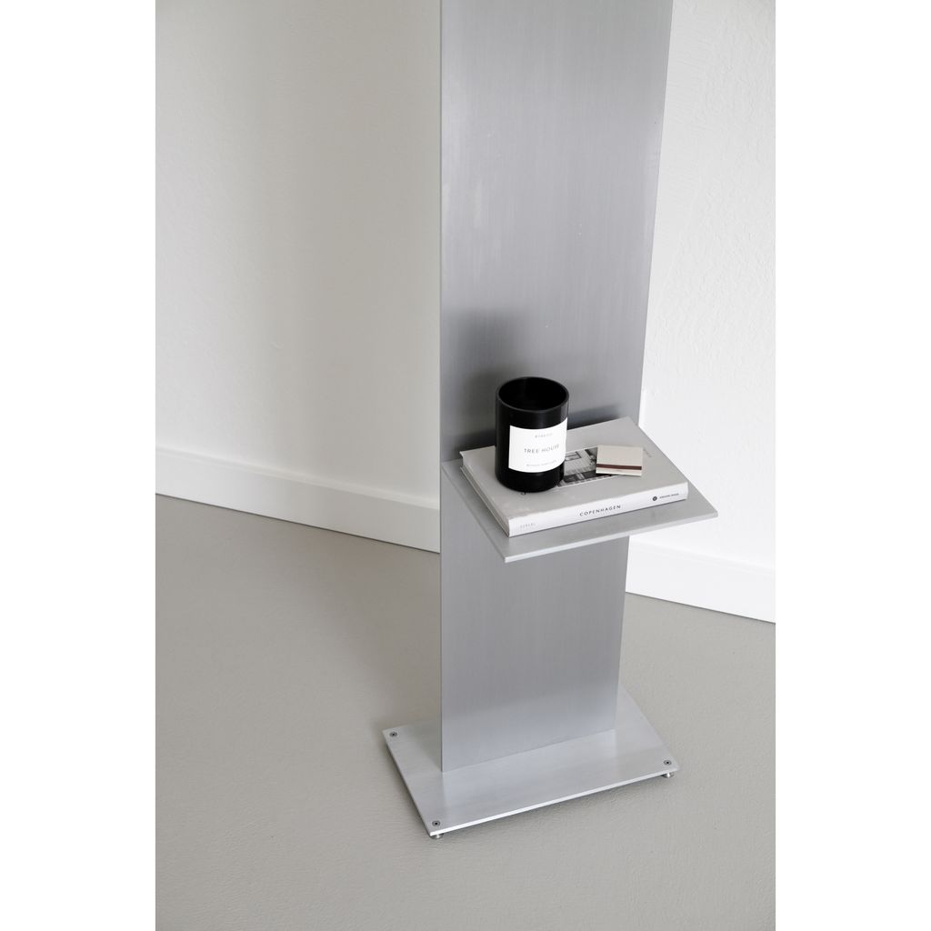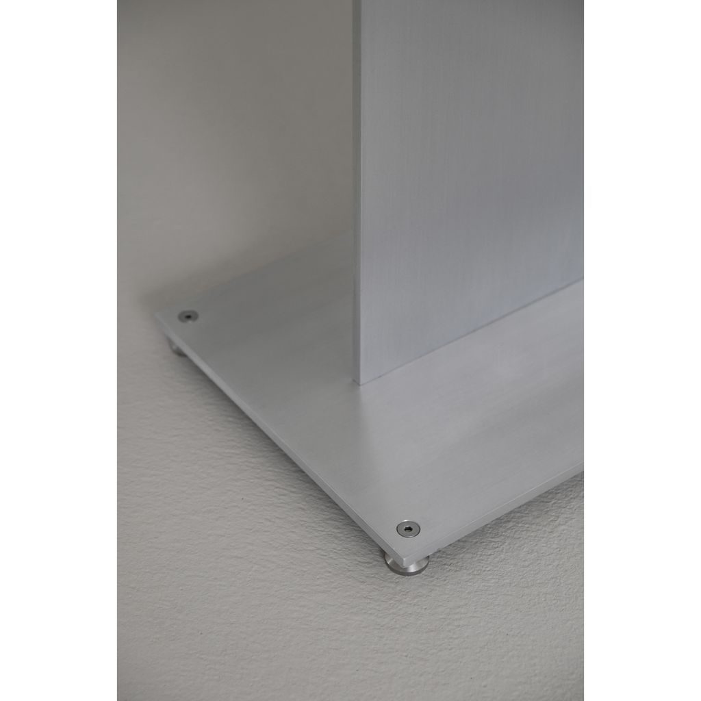 The AL-01 side table marks the inaugural piece in an ongoing series dedicated to exploring the versatility of aluminum in furniture design. Setting the tone for the AL series as a whole, AL-01 has been boiled down to its most minimal self, placing focus on the visual and physical intersection of thin plate material and the use of fastener connections, both reoccurring themes in the series.