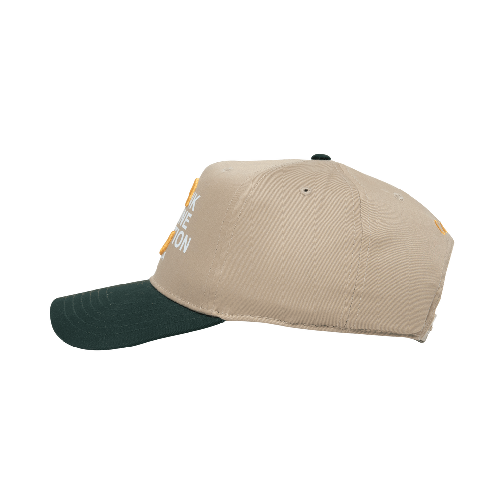 ALC x Carrots Beige/Green Deep Funk Hat features embroidered design and snap back closure.
