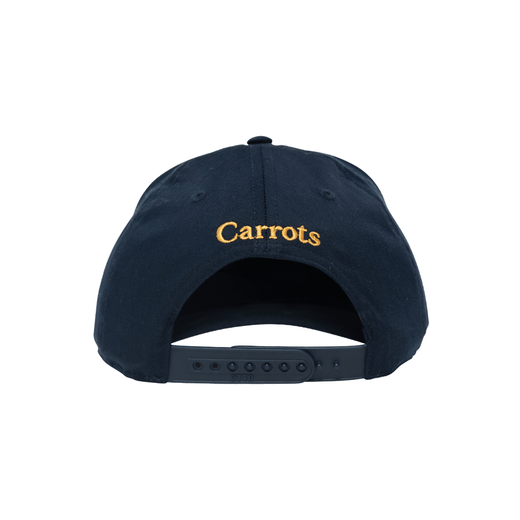 ALC x Carrots Navy Deep Funk Hat features embroidered design and snap back closure.
