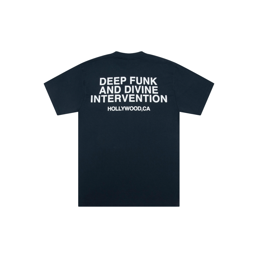 ALC x Carrots Navy Deep Funk Tee features graphic on front and back.