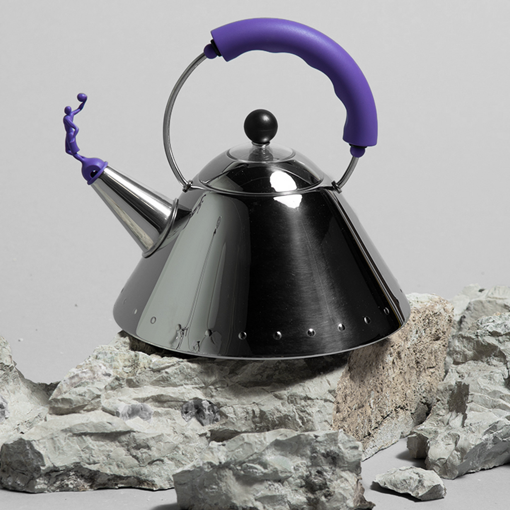 The 3909 kettle boldly unifies cultural elements like the rich imagery of basketball, an essential part of Abloh's personal journey, with the designer's distinguished visual language. Its distinctive whistle brings to life an energetic basketball player who soars to the hoop while the striking shades of purple on the handle and knob glow with energy.