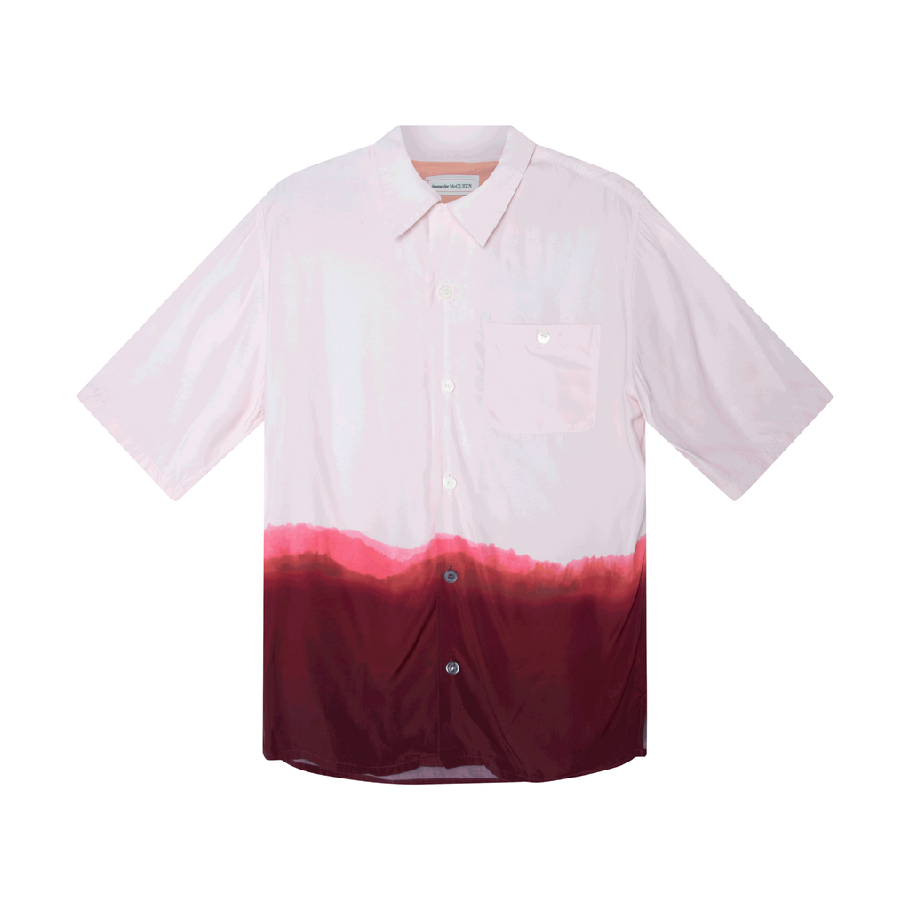 Alexander Mcqueen Dip-Dyed Camp Shirt features front button closure, notch spread collar, dip-dyed detail, and patch pocket at chest.