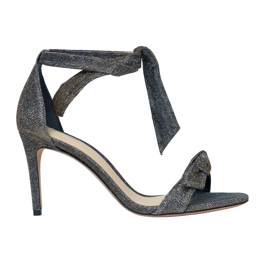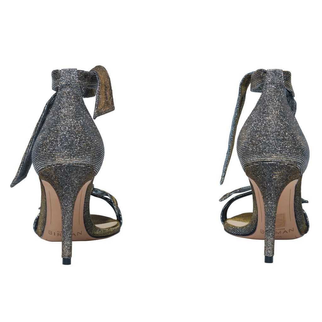Alexandre Birman Clarita Stellar Sandal features 85mm sandal, signature bow, and lustrous effect.