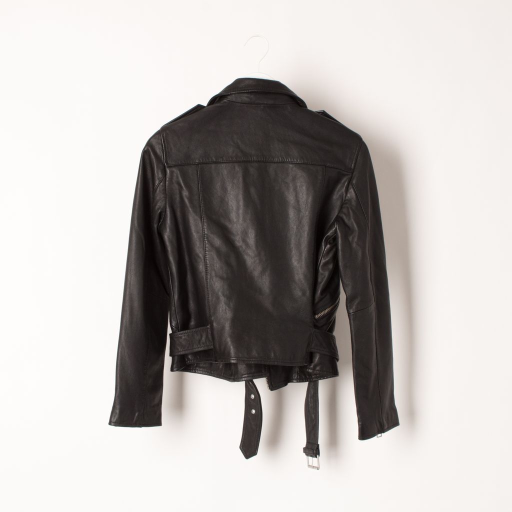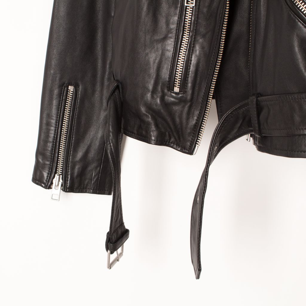 Like new, Balfern biker jacket is cut in a slim fit, crafted from butter-soft sheep leather that gets more supple with each wear. Designed with classic motorcycle-inspired details including zip cuffs and a belted hem, this timeless biker is a wardrobe staple for all year round. Slightly cropped length, fits true to size.