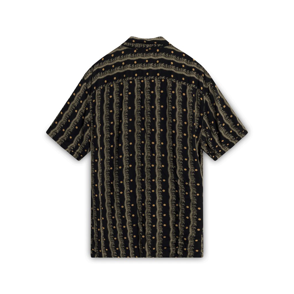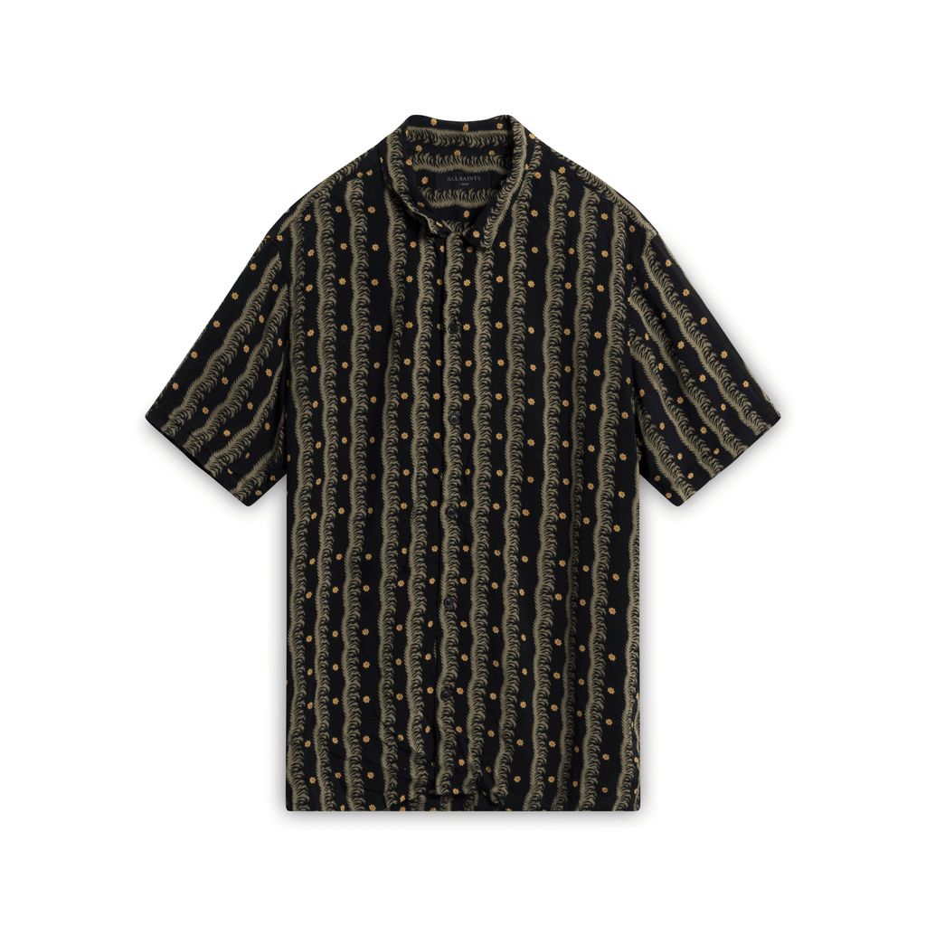 Consistent with Allsaints' moodier, urban aesthetic is this understated take on the Hawaiian shirt. Soft and Light-weight, the shirt features a beige and yellow print set against a black base. Exposed black button front closure.