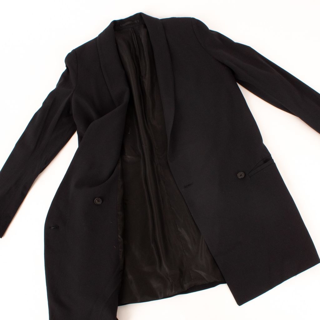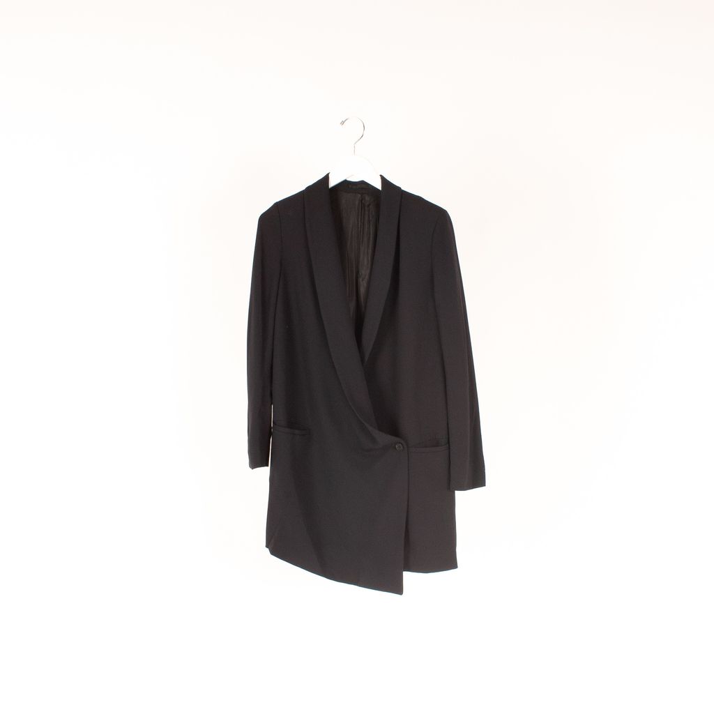 Industrial, minimal, tailored. A few words you could use to describe British fashion brand AllSaints, and coincidentally this tuxedo-eque blazer too. Features curved shawl collar, cross body single button closure, deep front pockets, and fully lined interior.
