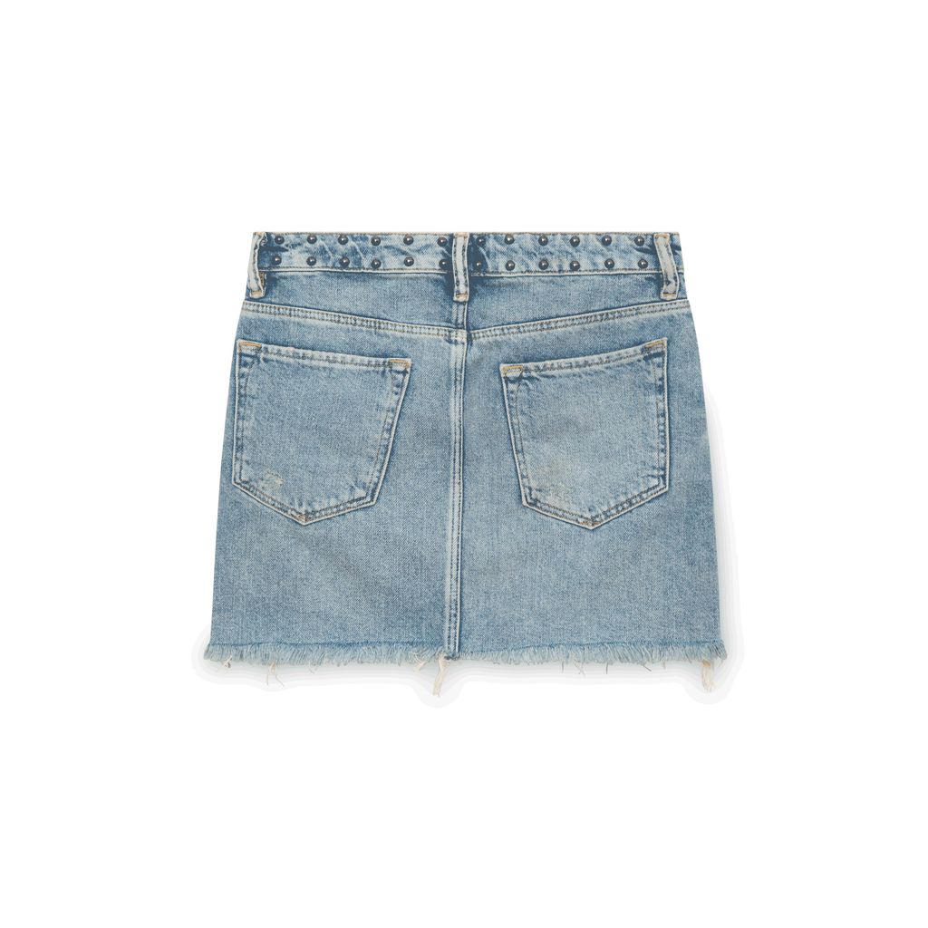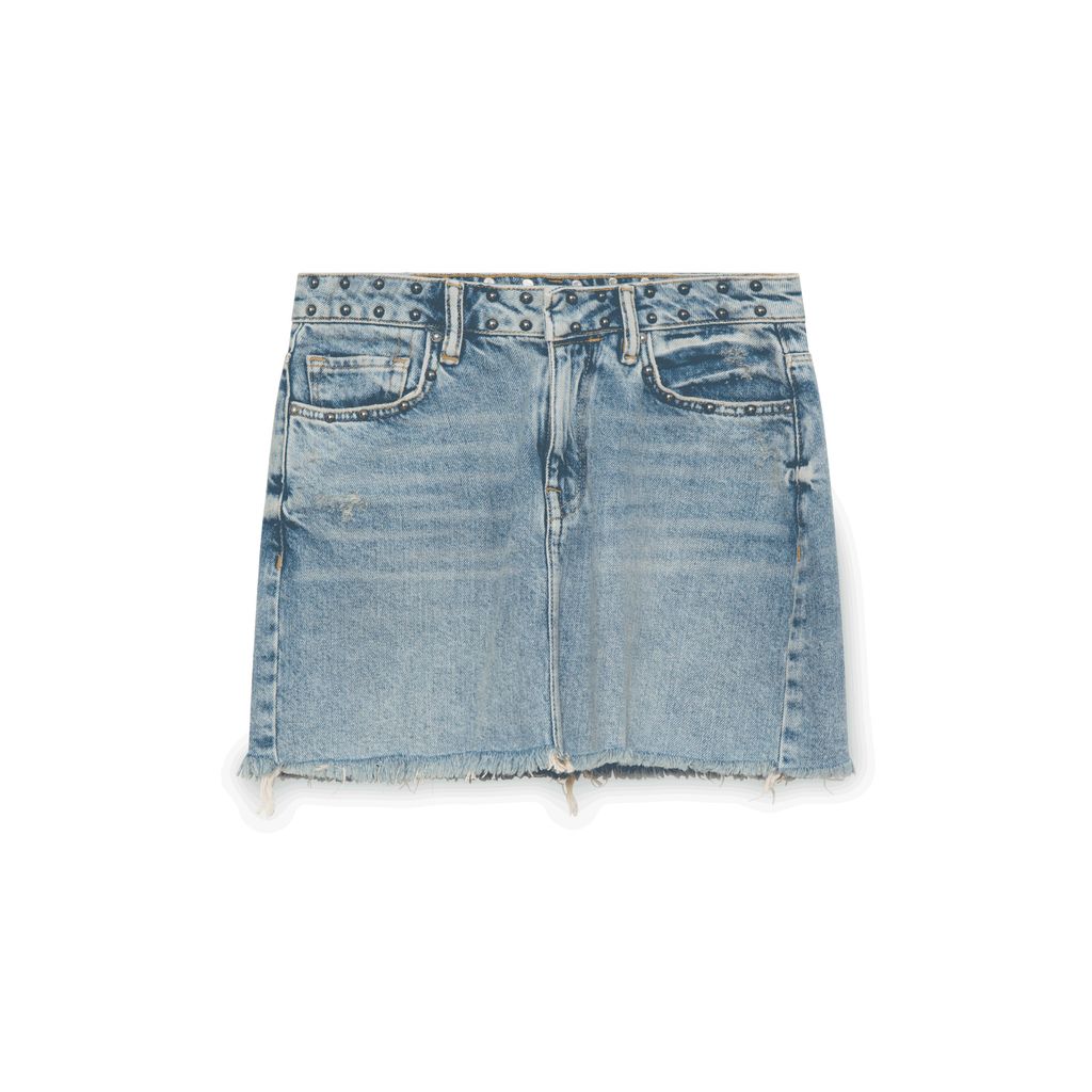 AllSaints Studded Denim Skirt features beaded detail at waist and pockets, zip fly and hook closure, 5-pocket styling.