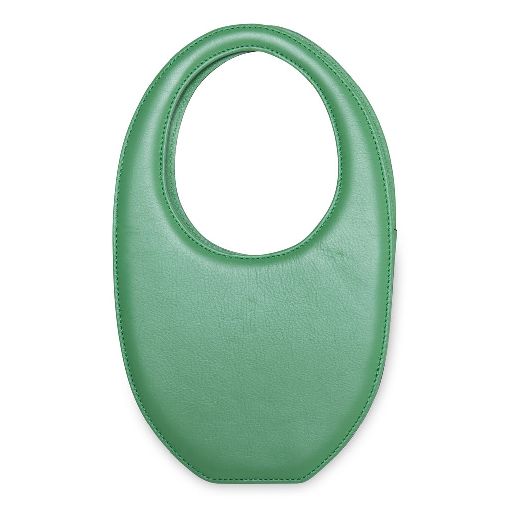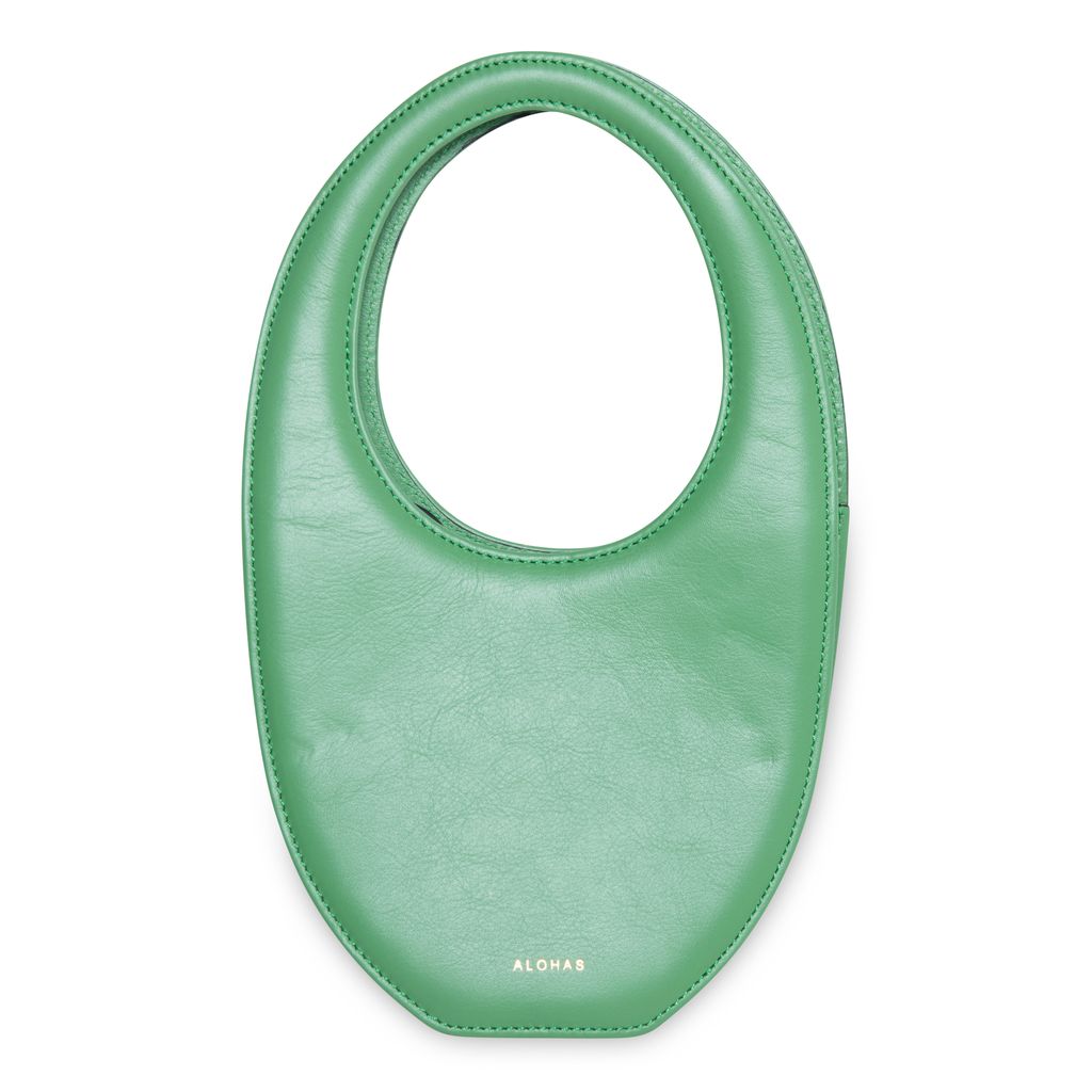 ALOHAS The O-Bag Leather Handbag in Green features gold foil logo detail, adjustable shoulder strap, and magnetic closure.
