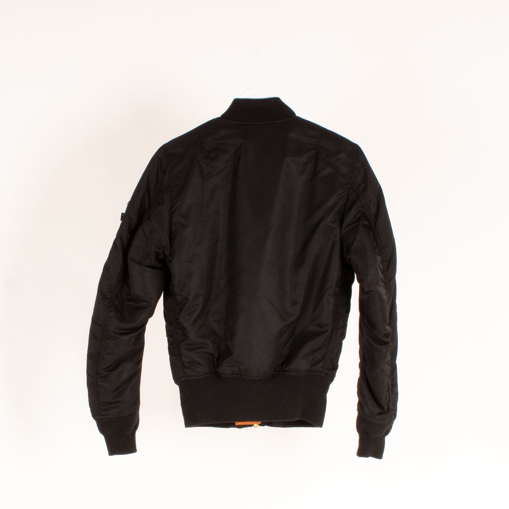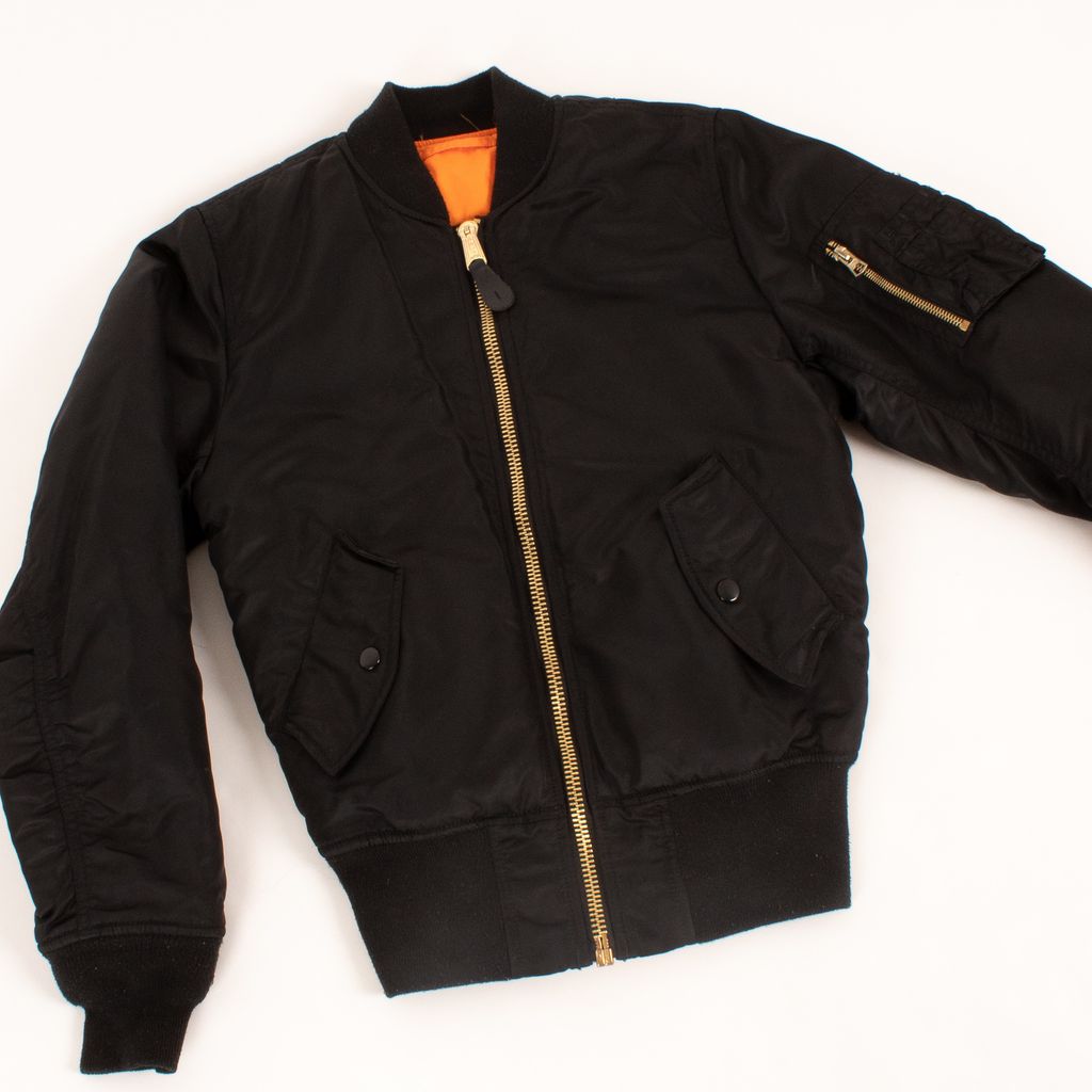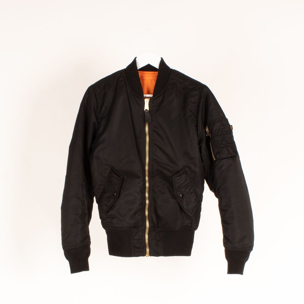A jacket that has truly stood the test of time, this bomber from Alpha Industries has gone from a wartime uniform necessity to a current unisex fashion icon. Features gold zipper closure down front and on side arm pocket, iconic orange lining, front angled snap closure pockets, and wide rib knit bands at waist and wrists. Does not come with Alpha Industries flight tag on arm.
