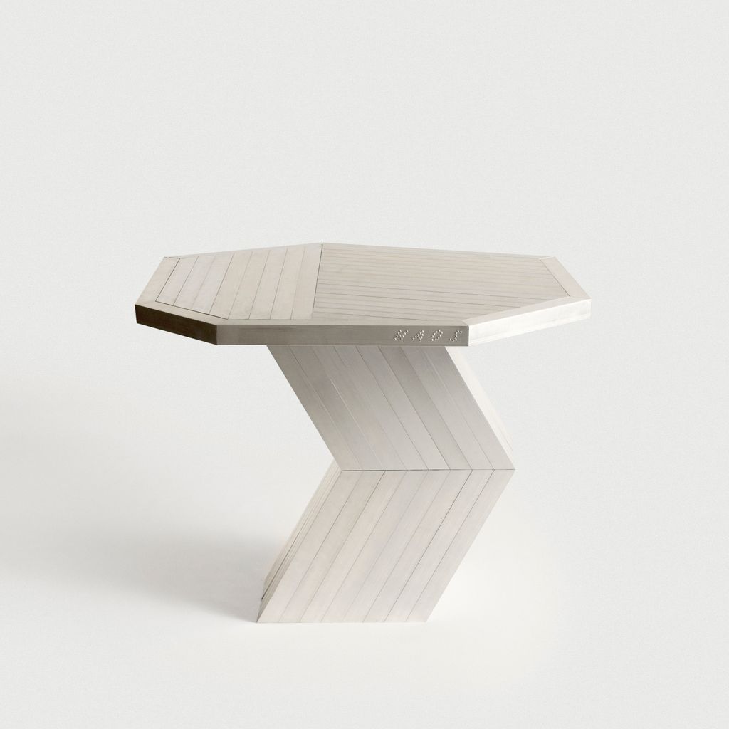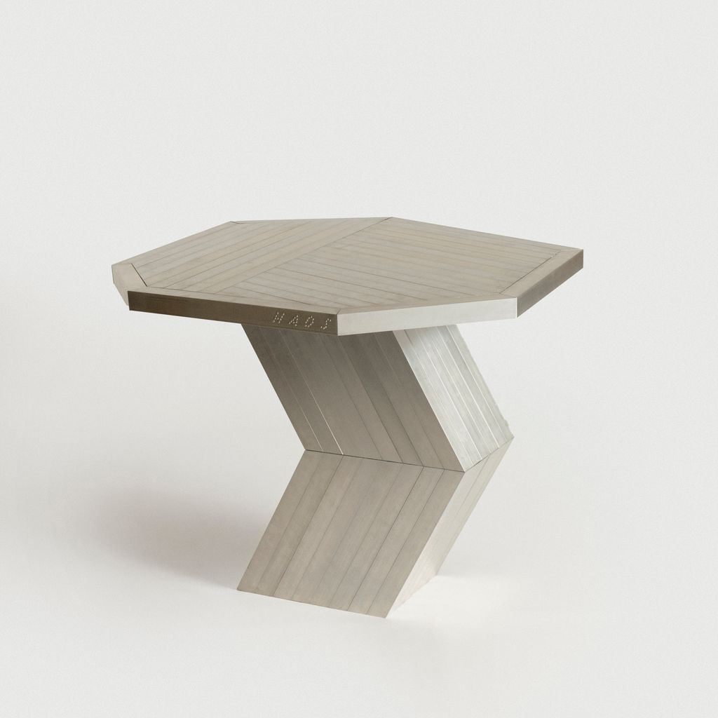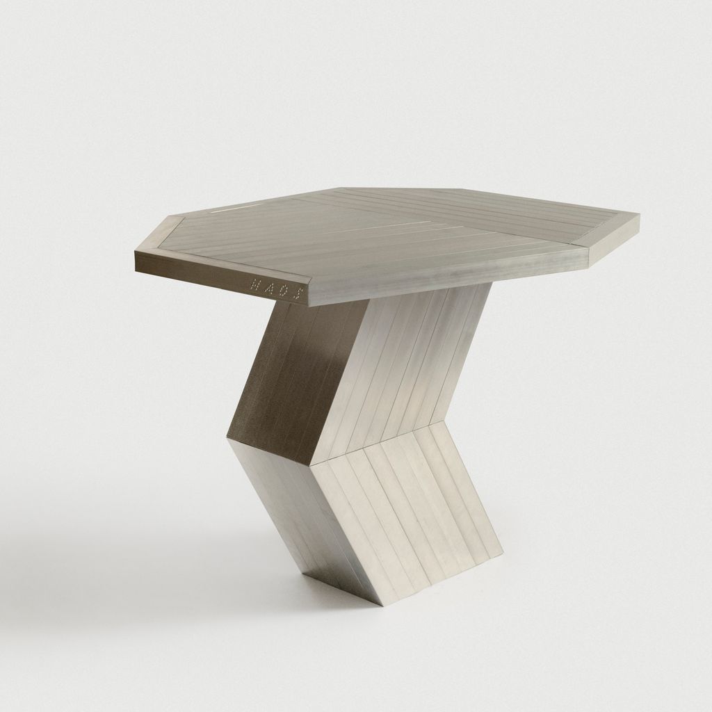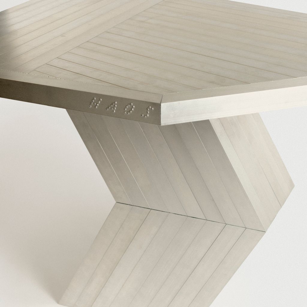 Studio HAOS explores concerns of our era by carving a singular path, away from both mechanized mass production and opulent craftsmanship. In 2023, the studio introduced seven new pieces employing just two materials, 40x40 aluminum tubes and zinc sheets – a pair of industrial, ready-made components from which objects of elementary presence are derived. Bearing the scars of their modest extraction, the resulting works embrace reductive geometry and repetition, exuding a raw poetry of strikingly contemporary resonance. This body of work was first presented in Paris in October 2023. 8 week lead time