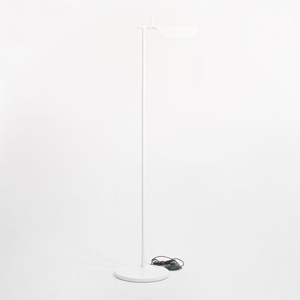 Listed for sale is a Tab F floor lamp with a white finish. The lamp was designed by E. Barber & J. Osgerby, produced by Flos in Italy. It dates to circa 2021 and is guaranteed as authentic. Condition is very good to excellent with minor wear from use. See photos.