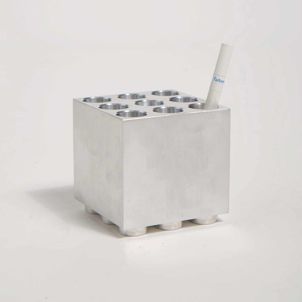 Amalgamating Ashtray can be used as a ashtray, penholder, candlestick holder, etc. Solid black of milled 6061 aluminum. "Lego" engineering for stacking. Made in the USA.