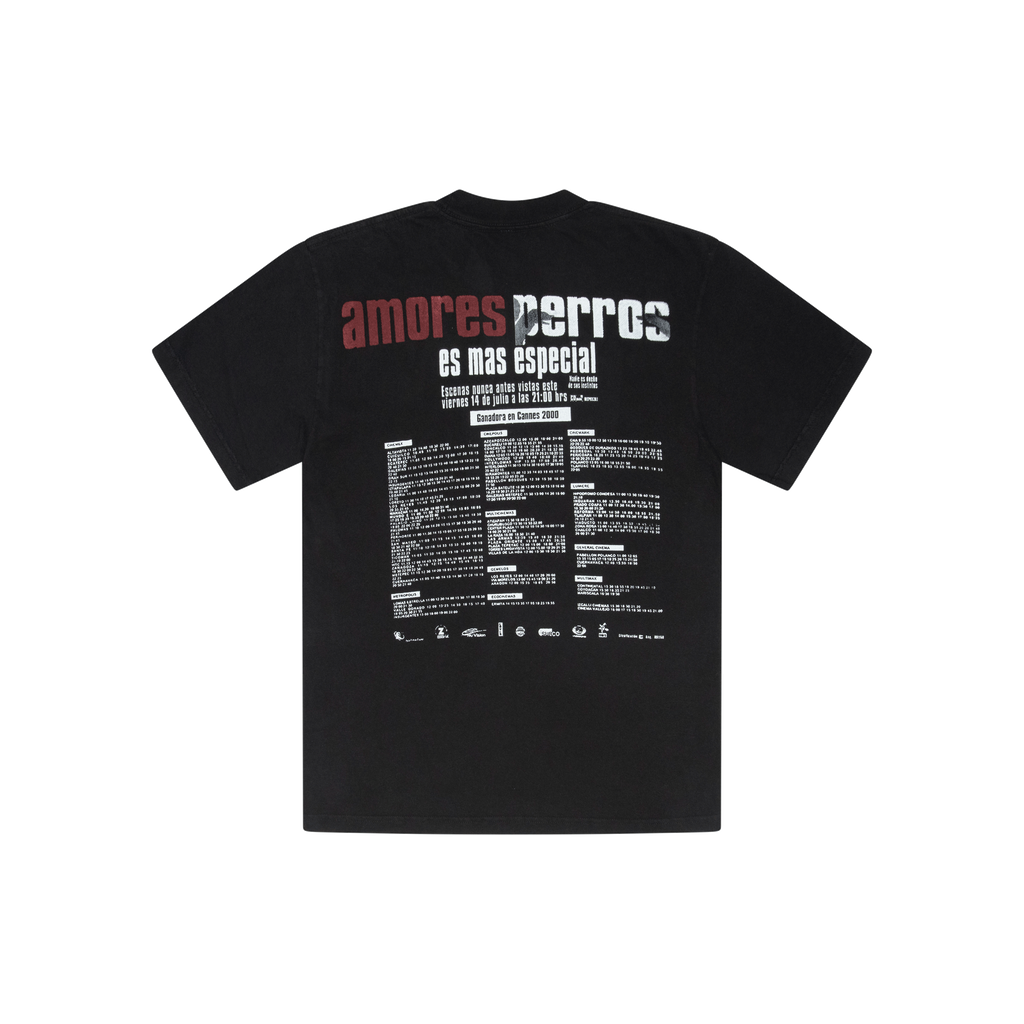 Amores Perros Tee features graphic on front and back.