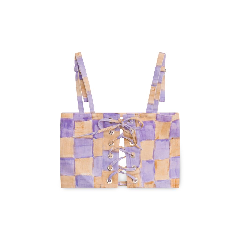 Anabell P. Lee Patterned Corset features lace closure, adjustable straps.