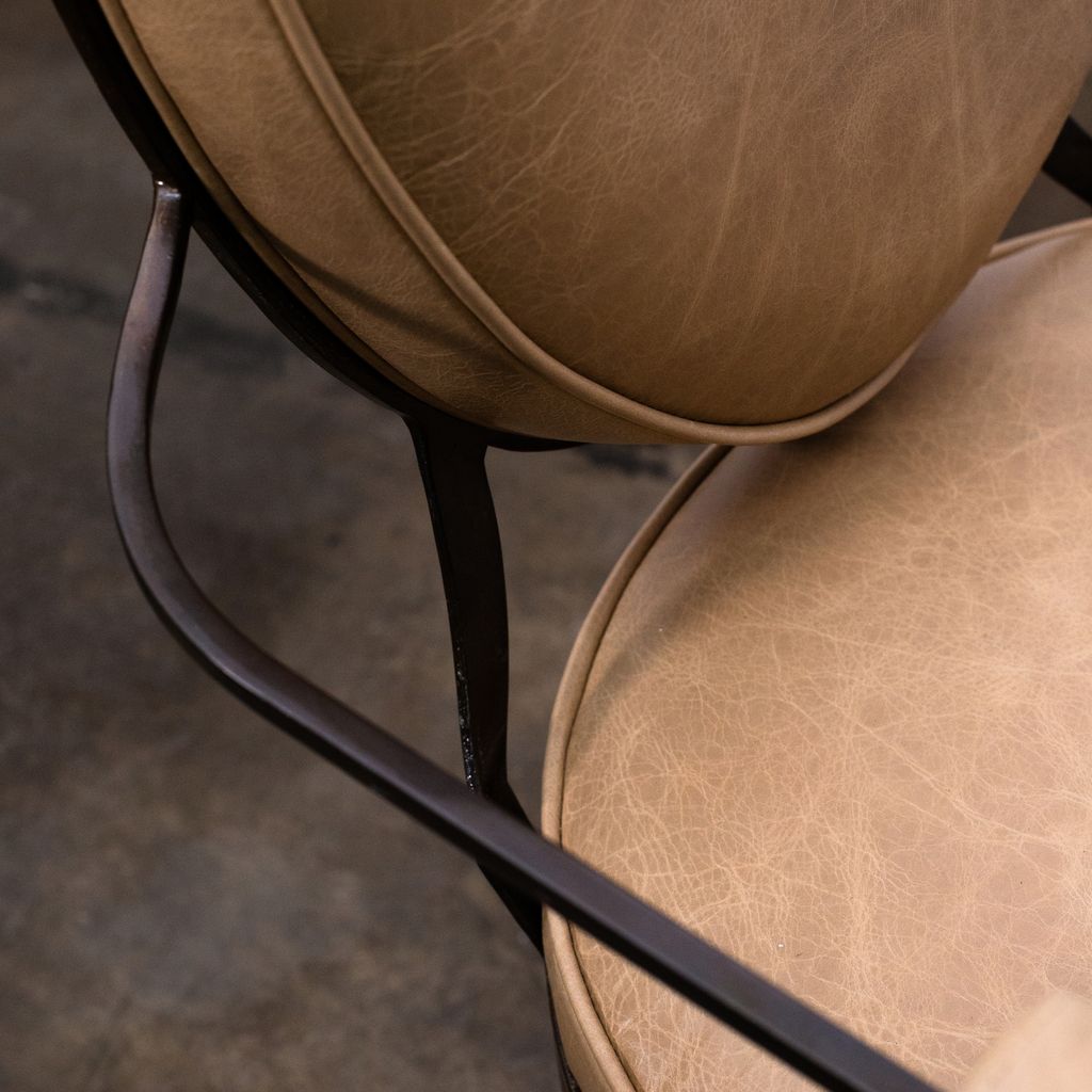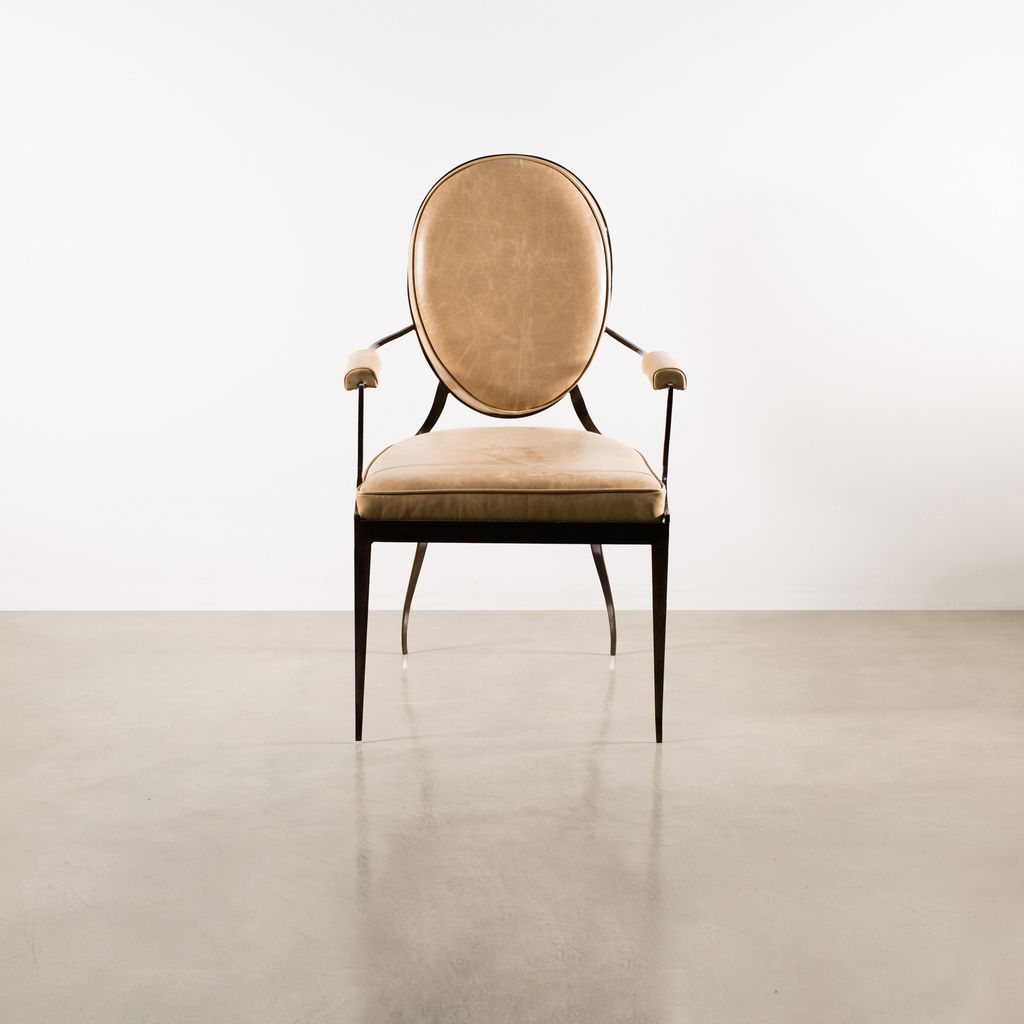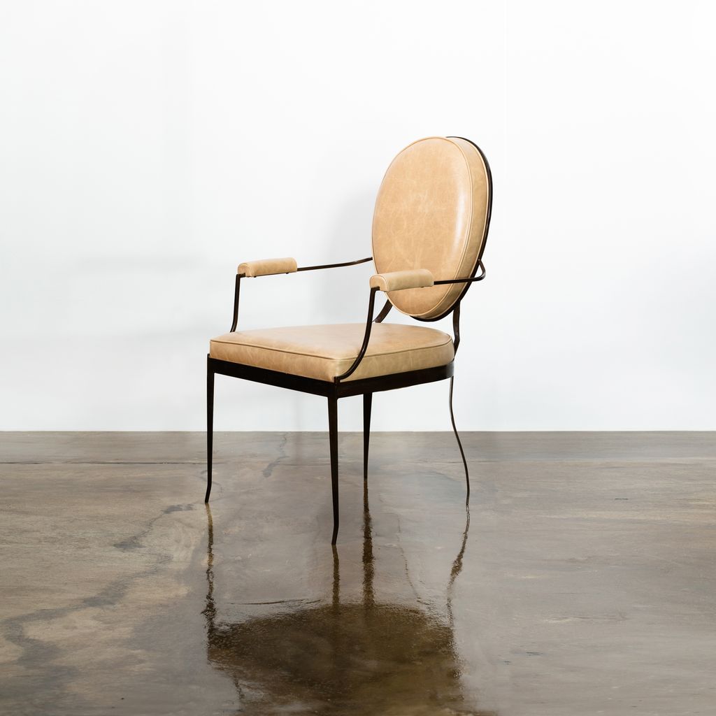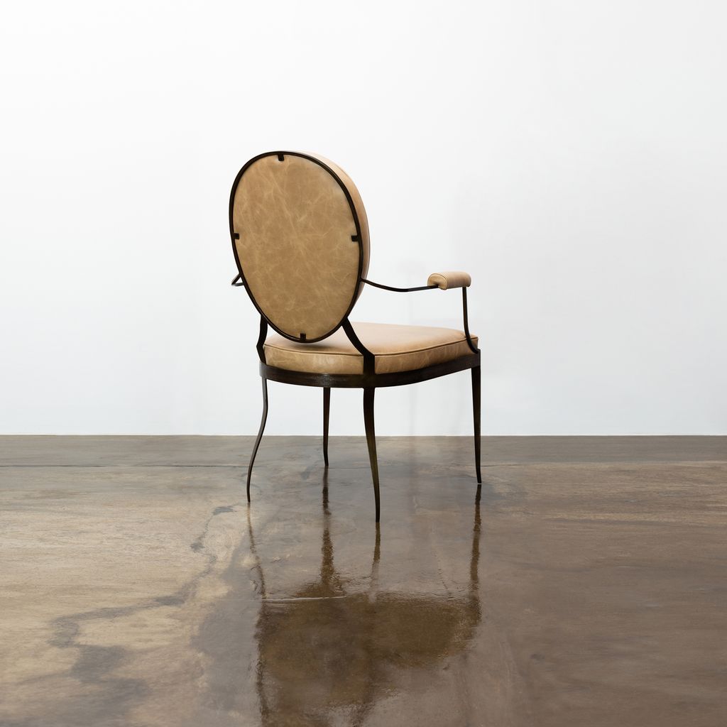 Our homage to Andre Arbus features a hand-forged, blackened iron frame with a gentle-curving back and arms. Available in blackened iron, as shown, or burnished or lacquered in the color of your choice.
