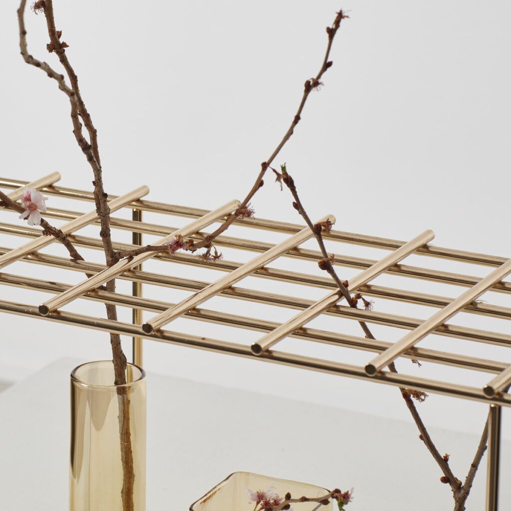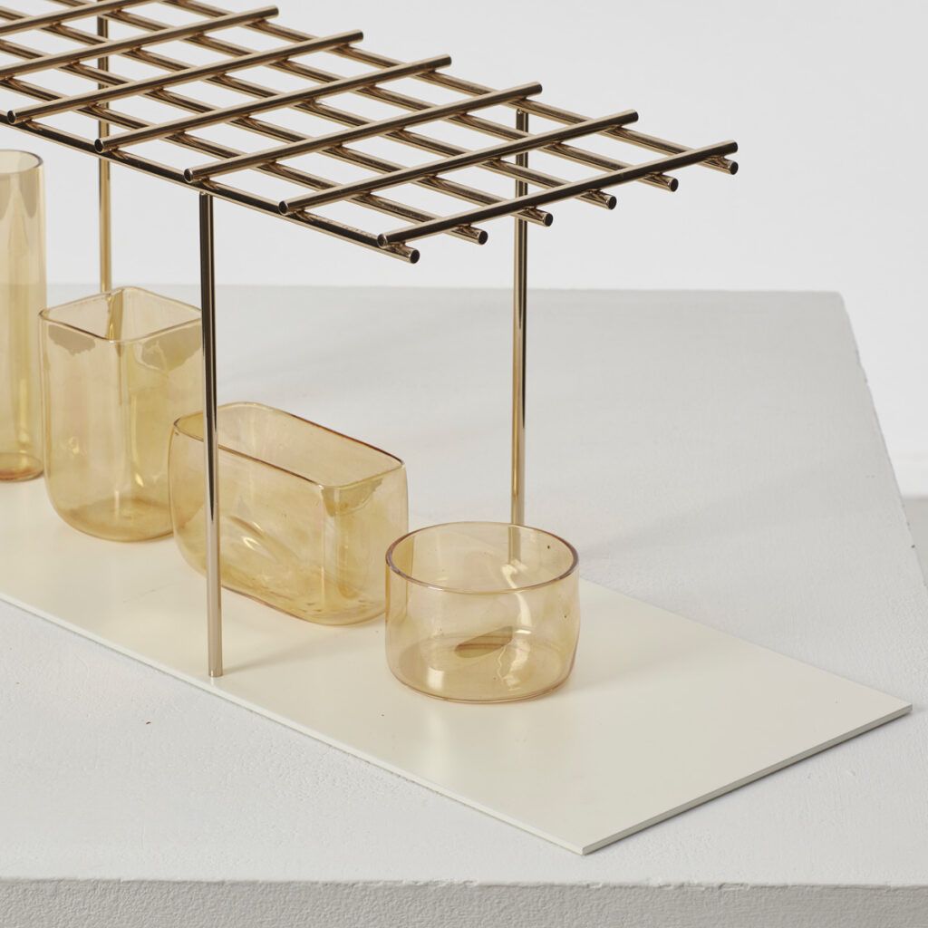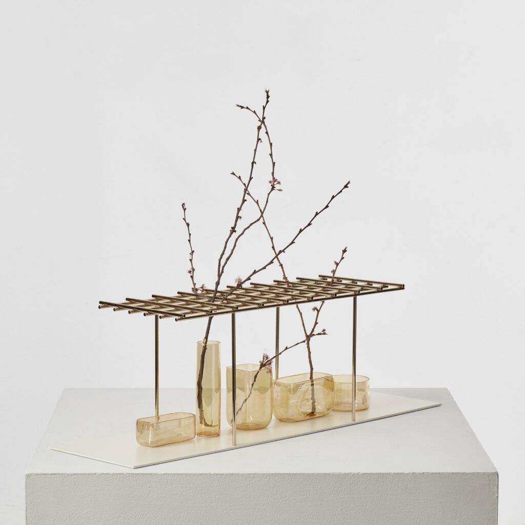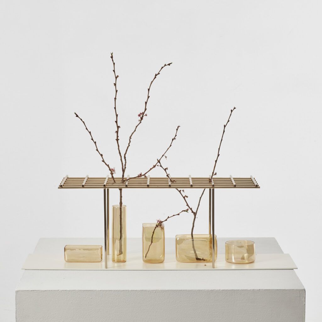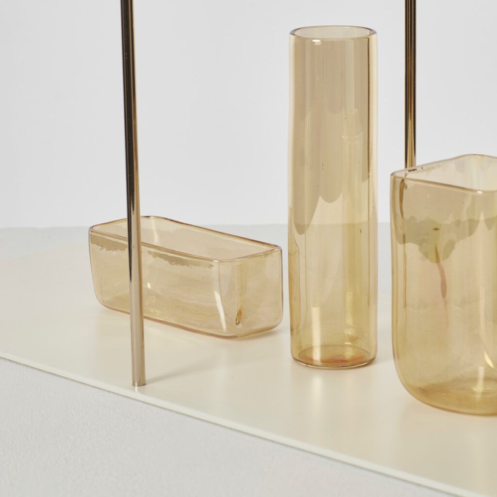 Decorative vase or centerpiece for flowers and leaves, with separate 4 fine blown glass vases designed by Andrea Branzi.