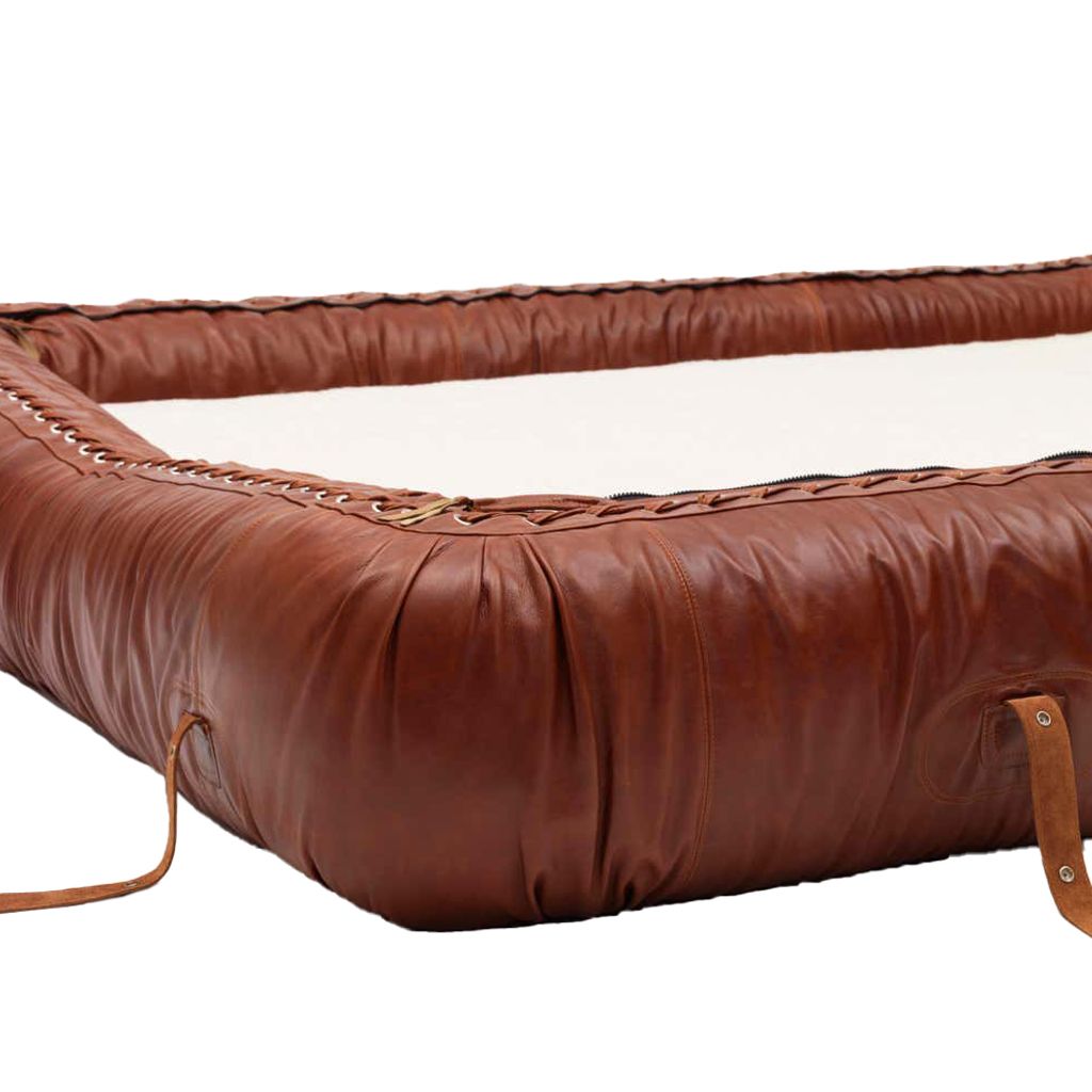 Anfibio sofa is exhibited in 13 museums worldwide, and features brown leather in modernist style.