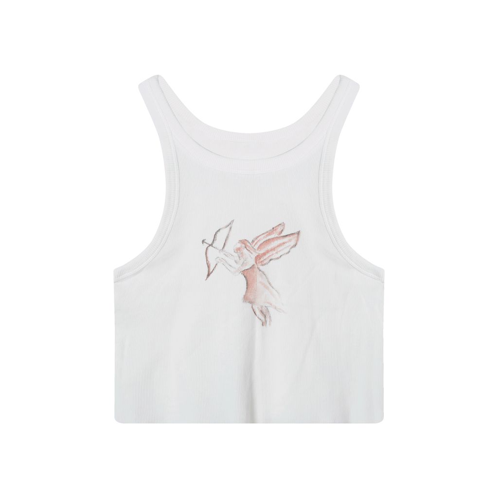This white tank is handmade and inspired by religious and spiritual iconography from the late 14th-mid-17th century.