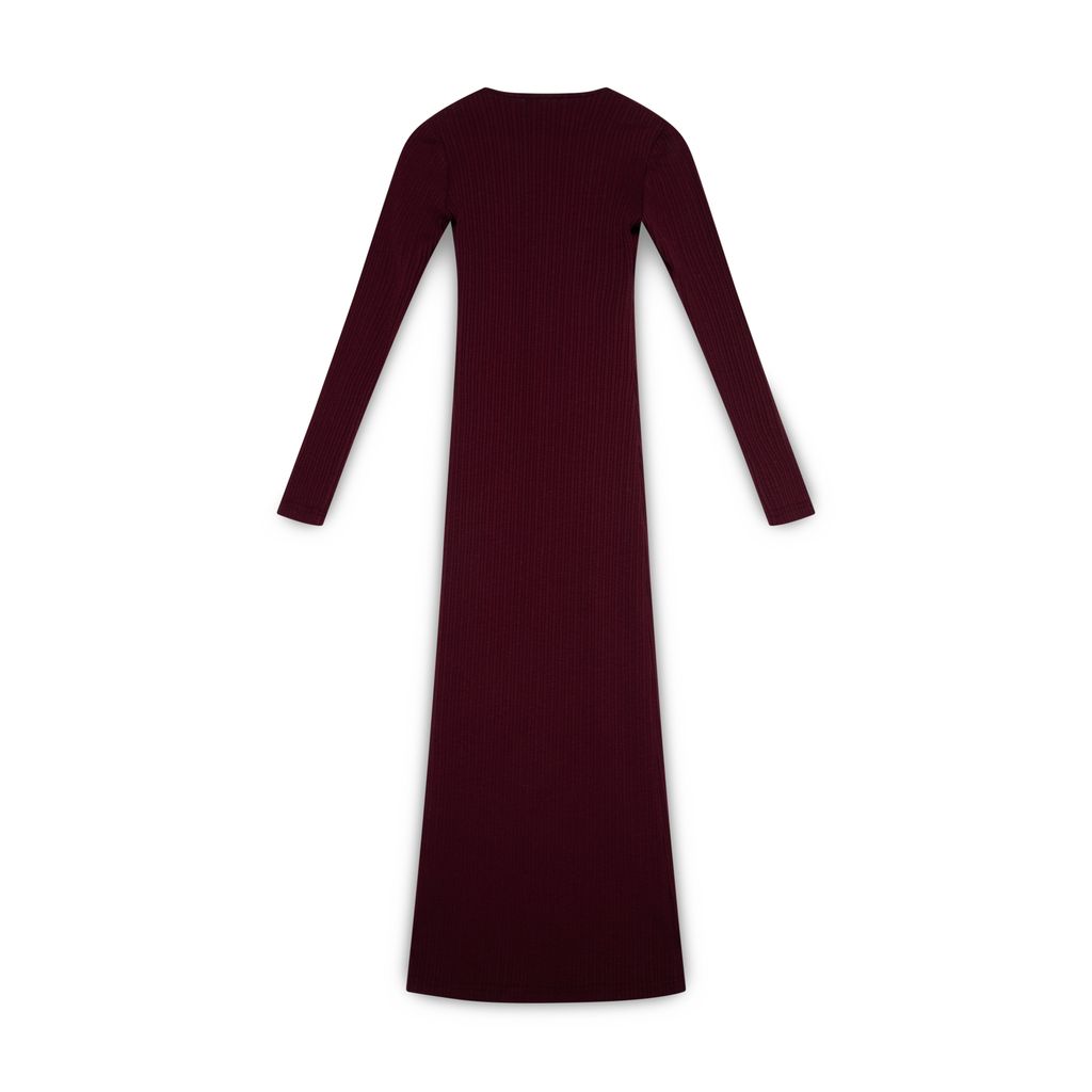 Anim Bordeaux Knit Dress features front slit details, colorful buttons, stretchy fabric, and knit material.