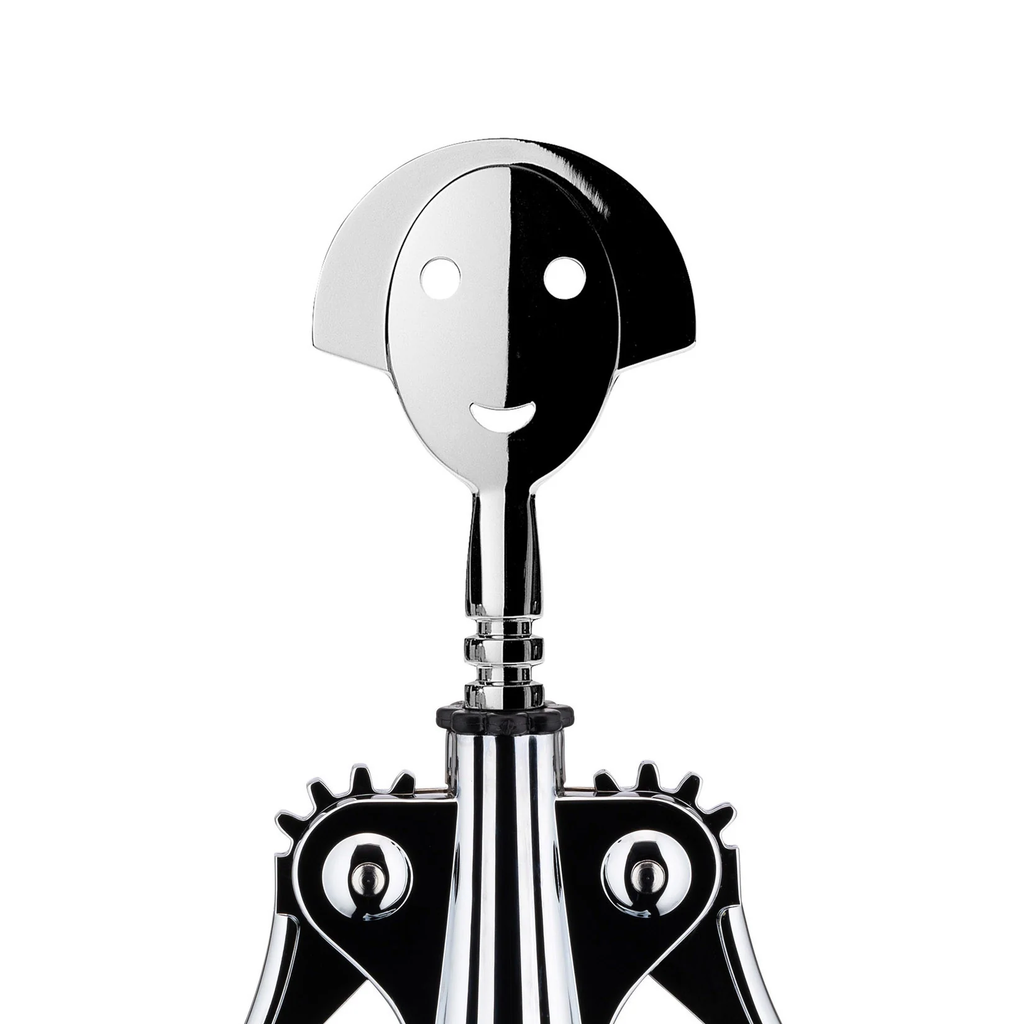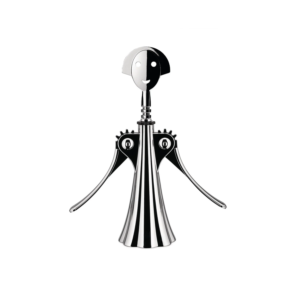 The Anna G. Designer corkscrew by Alessandro Mendini is an ironic tribute to a real woman whose smiling face has become a cult item over the years, resulting in a large collection pf tableware and kitchen objects. The Anna G. is the perfect designer corkscrew to gift to wine lovers or to bring laughter and joy at a dinner with close friends, while being an interesting and captivating item. since 1994, it is one of the most recognized products within the Alessi Encyclopedia.