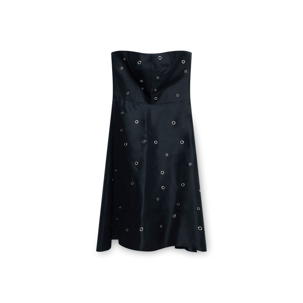 Anna Molinari strapless rivet dress features rivet details throughout, and invisible closure zipper at back.
