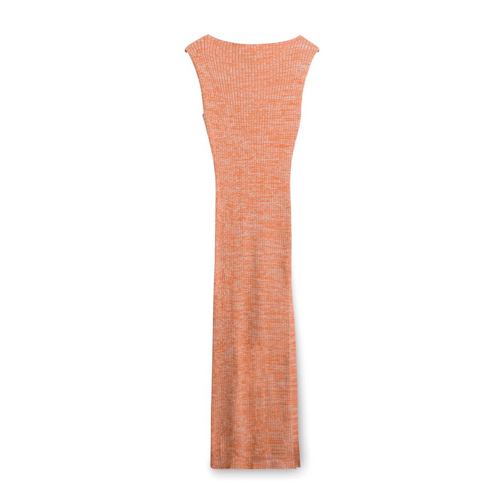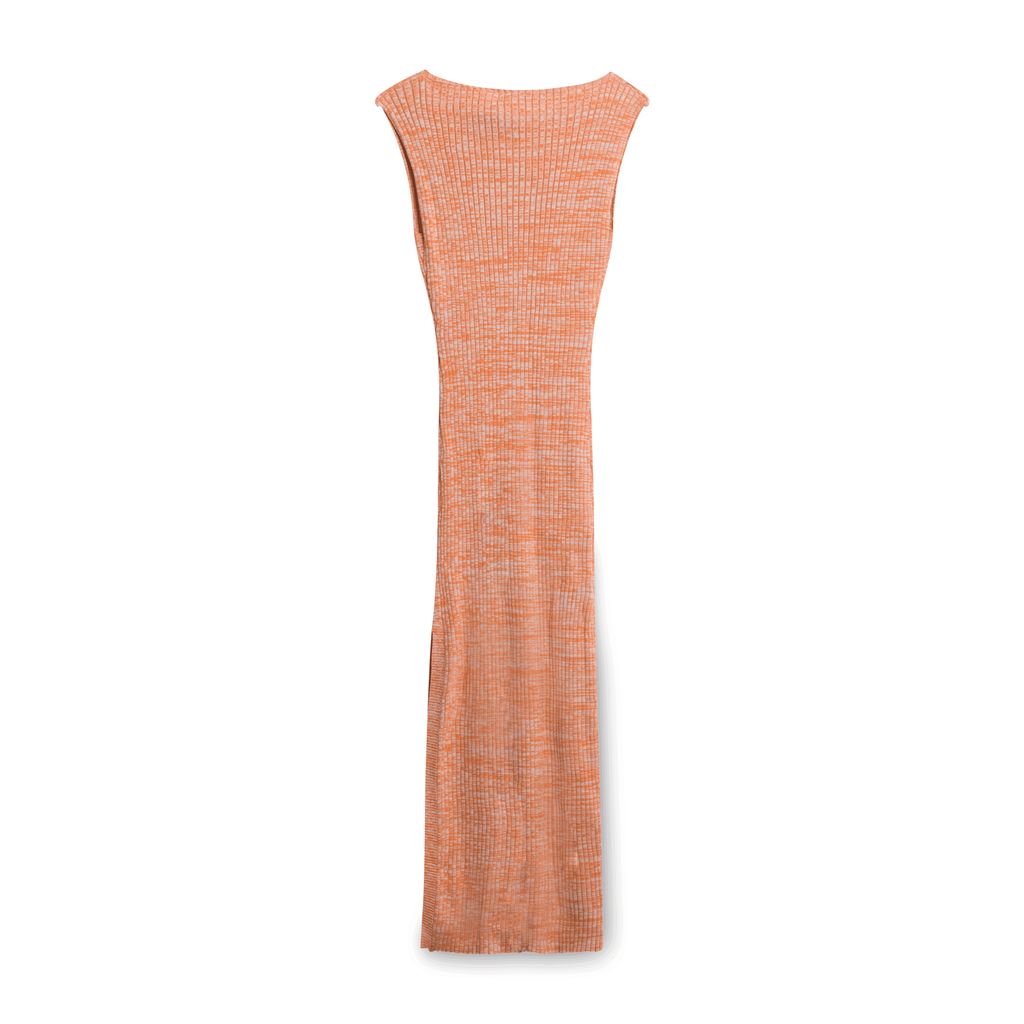 Orange knit dress with a touch of white in the knit. Slit going down the right leg.