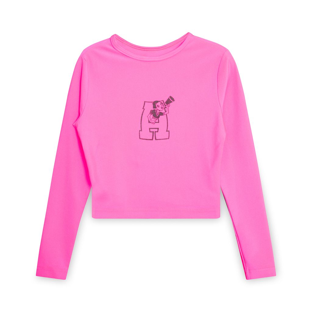 Anna Sui Cheerleading Crop Top features stretchy form fitting fabric, Cheerleader graphic, original labels.