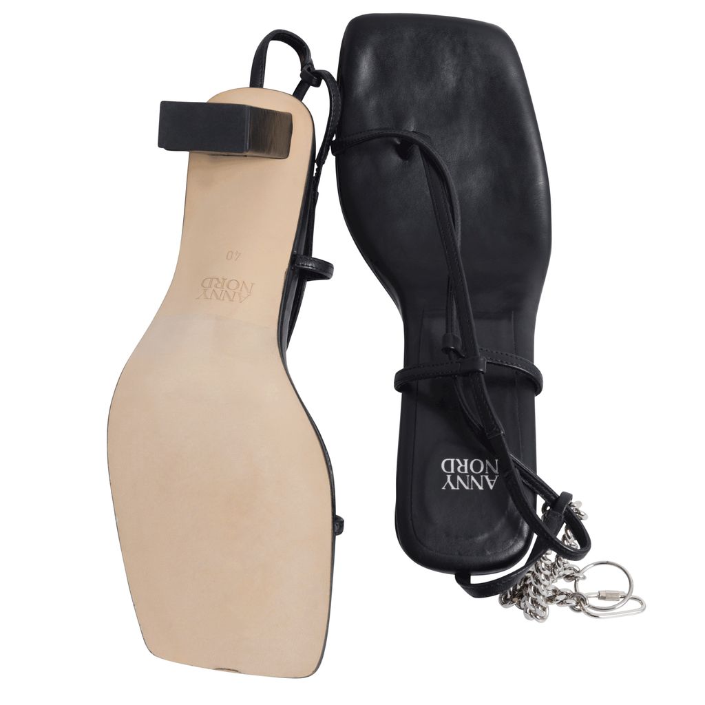 Anny Nord Shake the Chains Sandals feature strappy design and decorative chain enclosure.