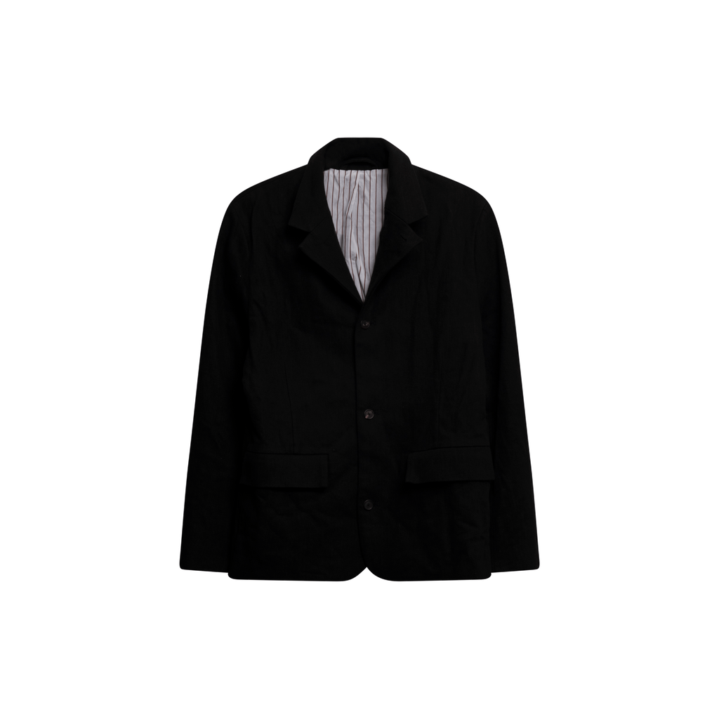 Style: Two pocket blazer. Four buttons. Silk pinstripe lining.