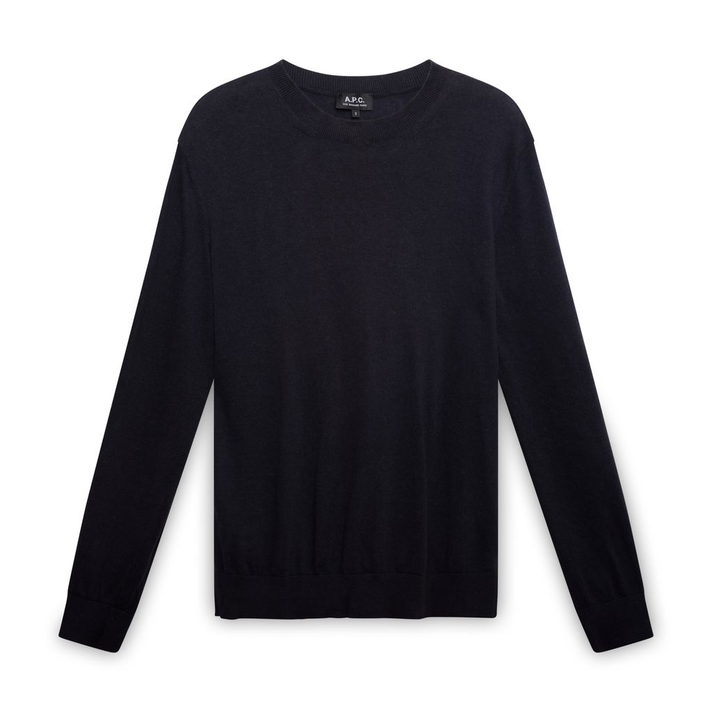 A.P.C. Cashmere Sweater features ribbed crew neck, elastic ribbing at wrist and hem, knit detail at neckline