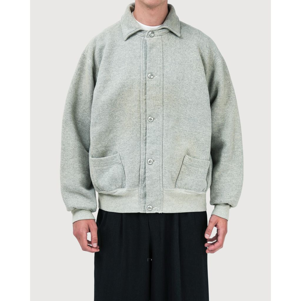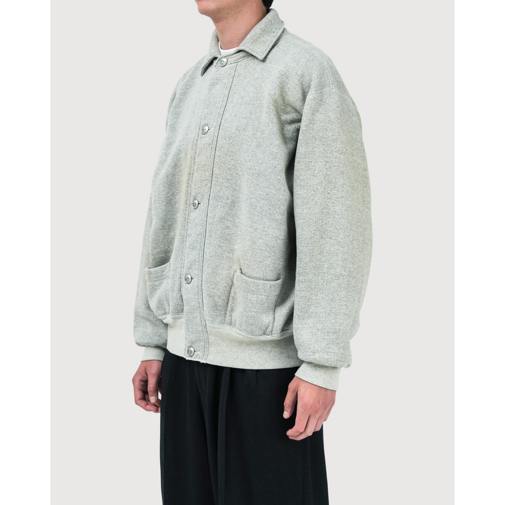 The A.Preses Vintage Sweat Cardigan in grey reinterprets 1930s athletic wear through refined Japanese craftsmanship. Crafted from slow-knit loopback fleece with a waffle-lined interior, it features seamless shoulders, front metal snap buttons and a relaxed silhouette. A timeless sweat cardigan designed with subtle aging for an authentic vintage character.