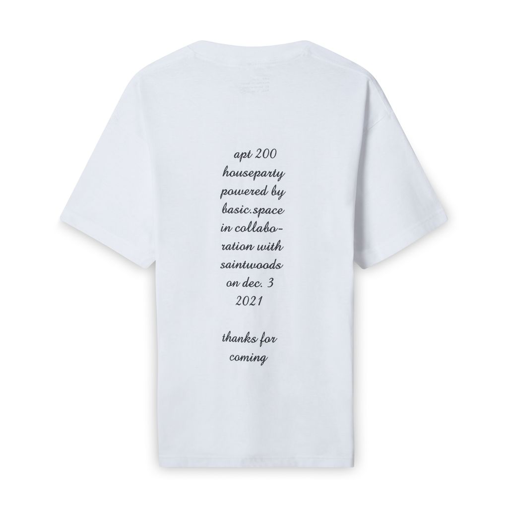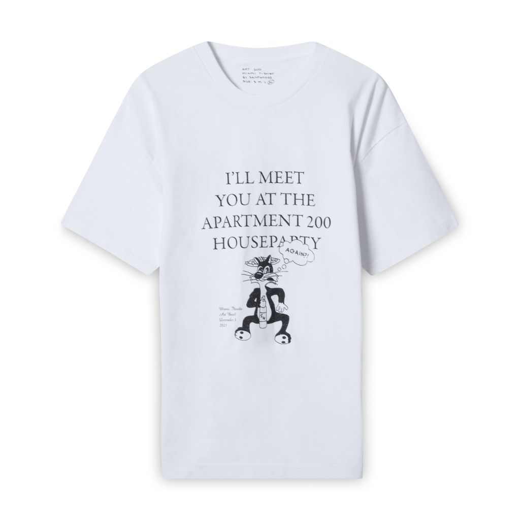 These limited-edition t-shirts from the Apt 200 Miami Art Basel party feature text on the front and back, and a graphic.