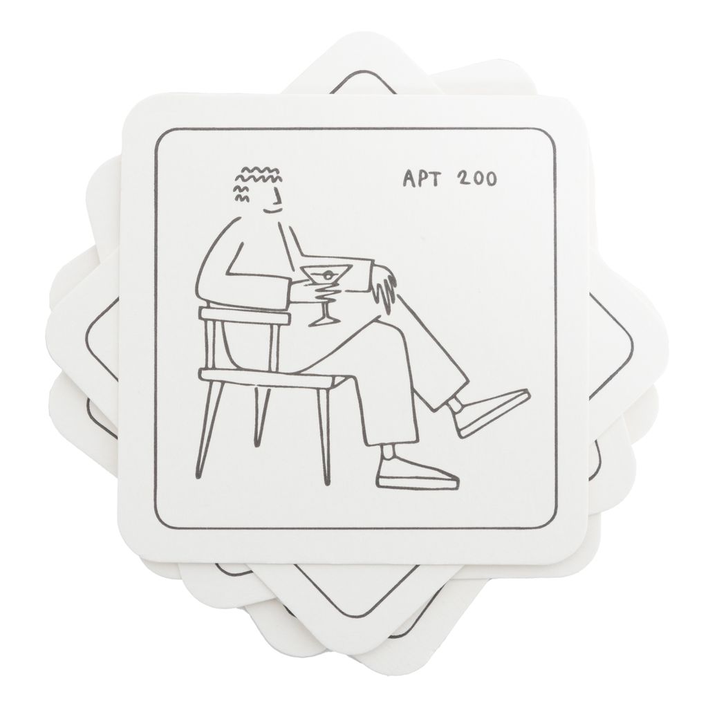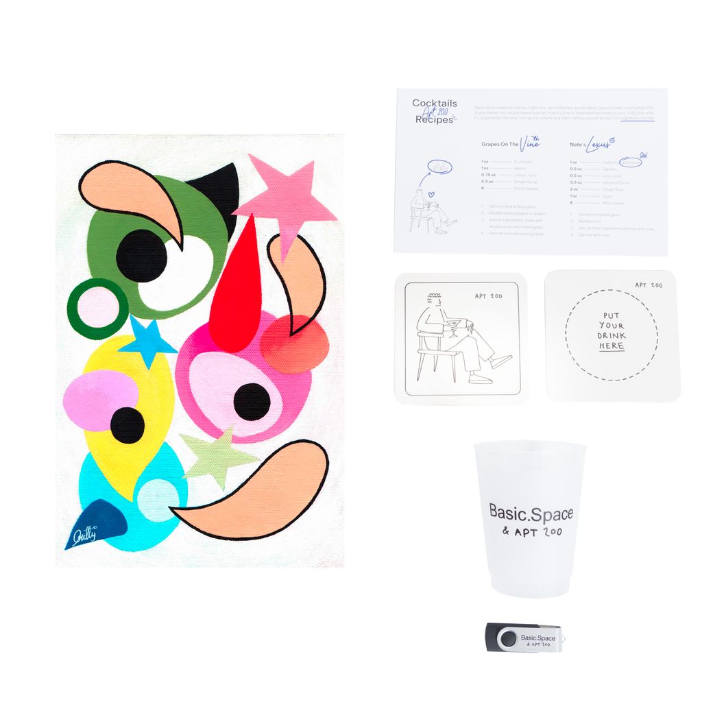 Each print purchase will include an Apt. 200 party pack including a cocktail recipe card, branded cups, coasters and a USB uploaded with mixes from some of Apt. 200’s favourite DJs. We’re hoping you can bring the Apt. 200 vibe to your home until we are able to host you again. All profits will be split 50/50 with the artist and the charity of their choice!