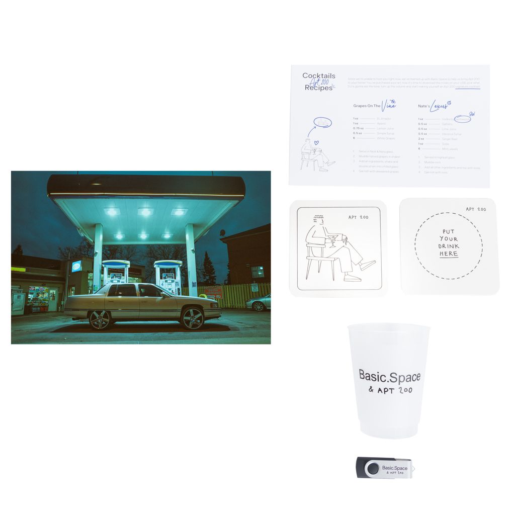 Each print purchase will include an Apt. 200 party pack including a cocktail recipe card, branded cups, coasters and a USB uploaded with mixes from some of Apt. 200’s favourite DJs. We’re hoping you can bring the Apt. 200 vibe to your home until we are able to host you again. All profits will be split 50/50 with the artist and the charity of their choice!