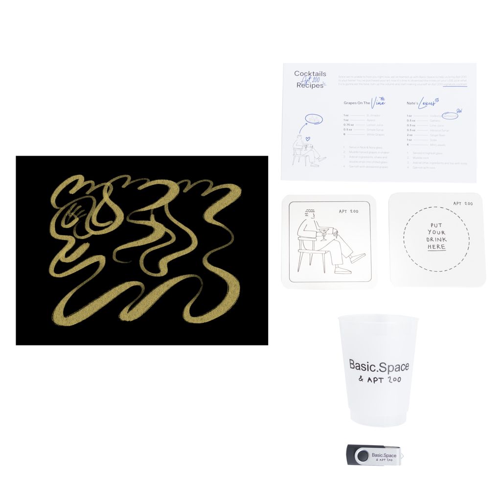 Each print purchase will include an Apt. 200 party pack including a cocktail recipe card, branded cups, coasters and a USB uploaded with mixes from some of Apt. 200’s favourite DJs. We’re hoping you can bring the Apt. 200 vibe to your home until we are able to host you again. All profits will be split 50/50 with the artist and the charity of their choice!