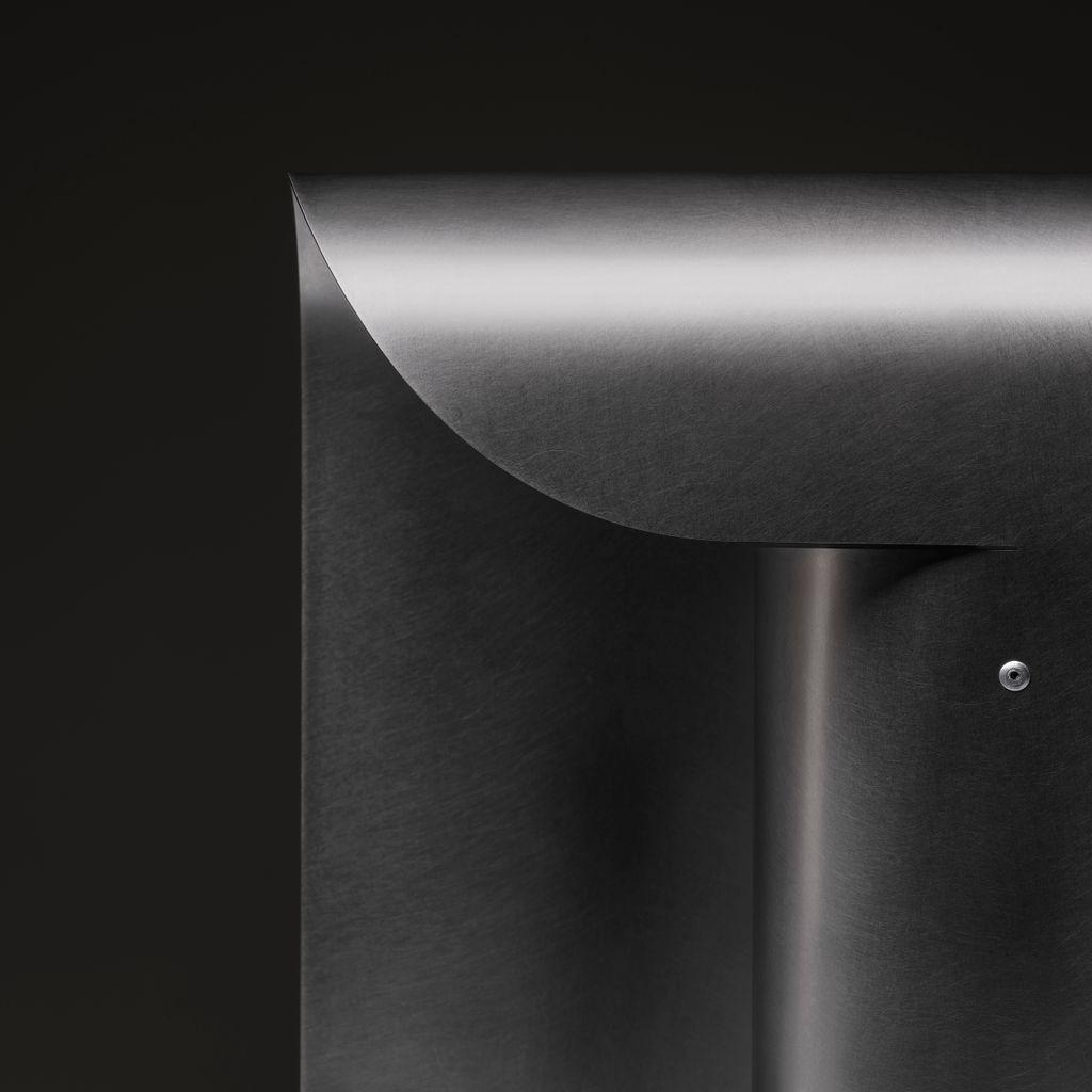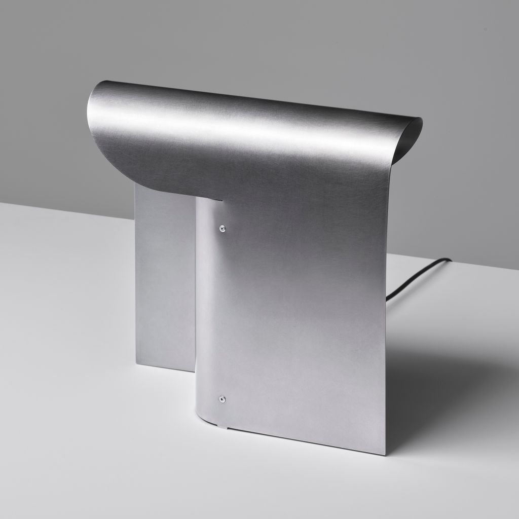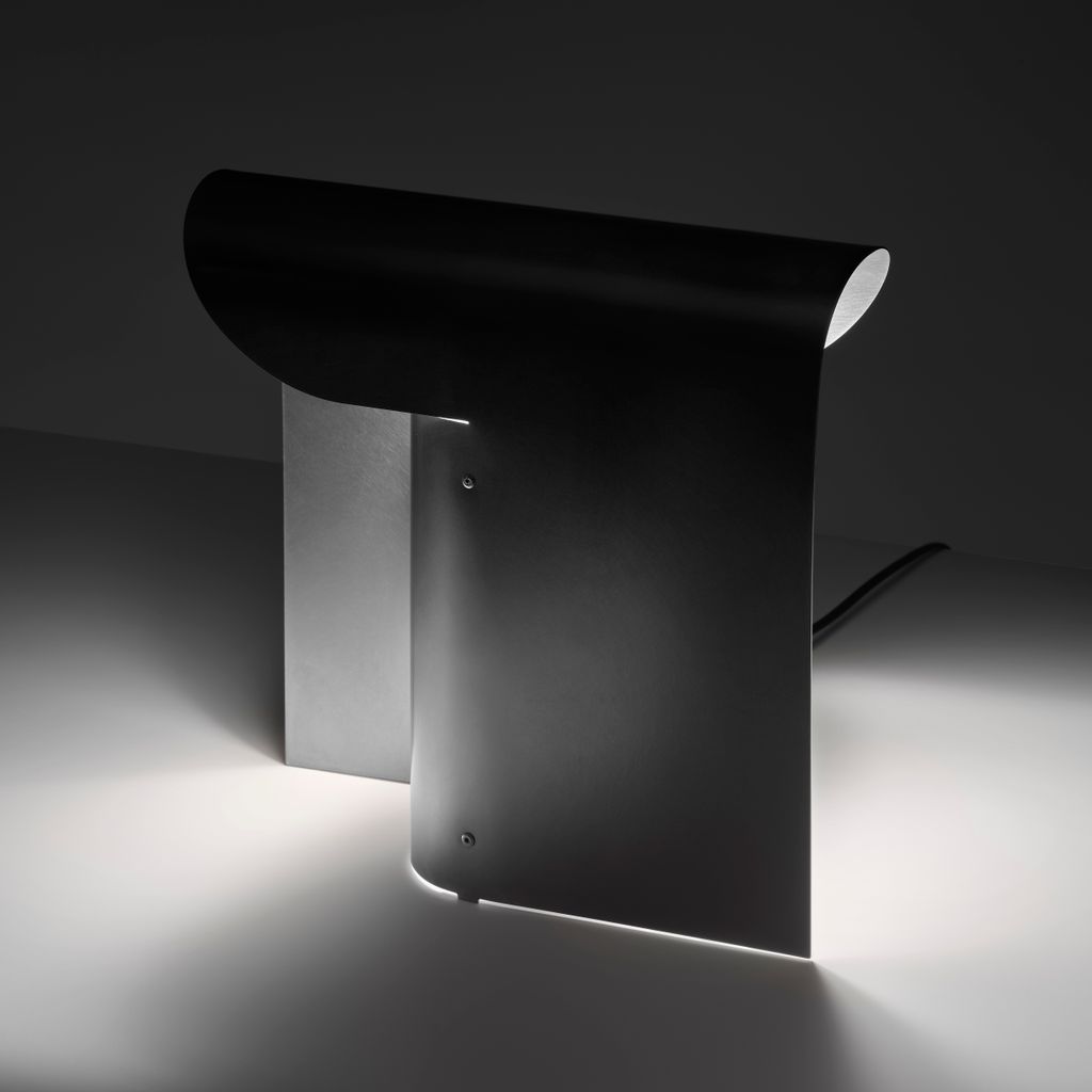 The Arc lamp is crafted from a single sheet of metal. By forming three identical curves, the sheet transform to it's final shape.