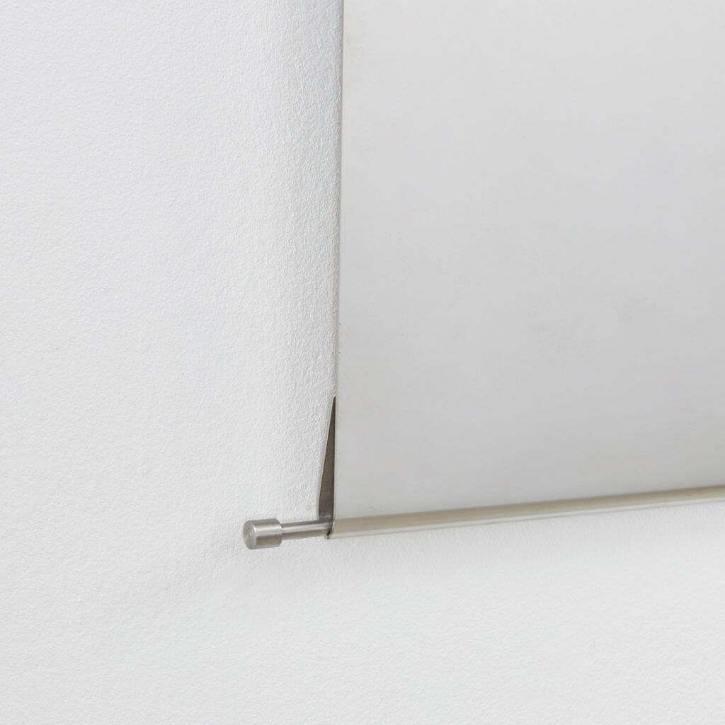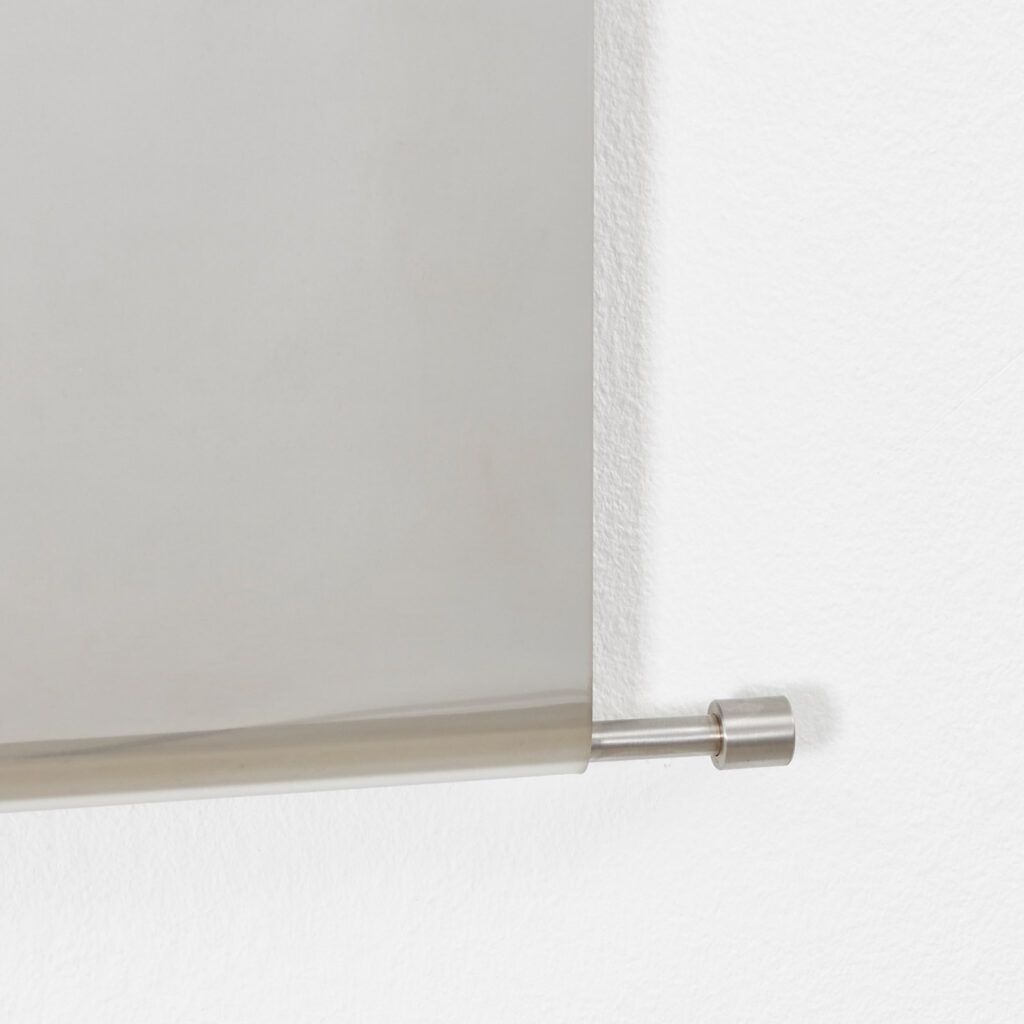 Made to order by Archive for Space, Mirror 001 treats stainless steel with fabric-like fluidity. Rolled hems allow the mirror to be hung on two slim wires, trading the stiffness of metal for a sense of weightlessness and gentle movement. Steel was selected for its purity and capacity to be polished to a high mirror finish, retaining a feeling of solidness.